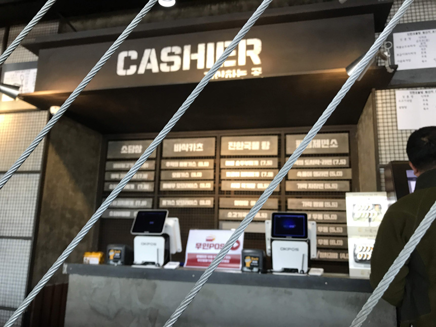 앞에 주문하는 분이 있어 자연스럽게(?) 무인 포스기 앞에 섰다.