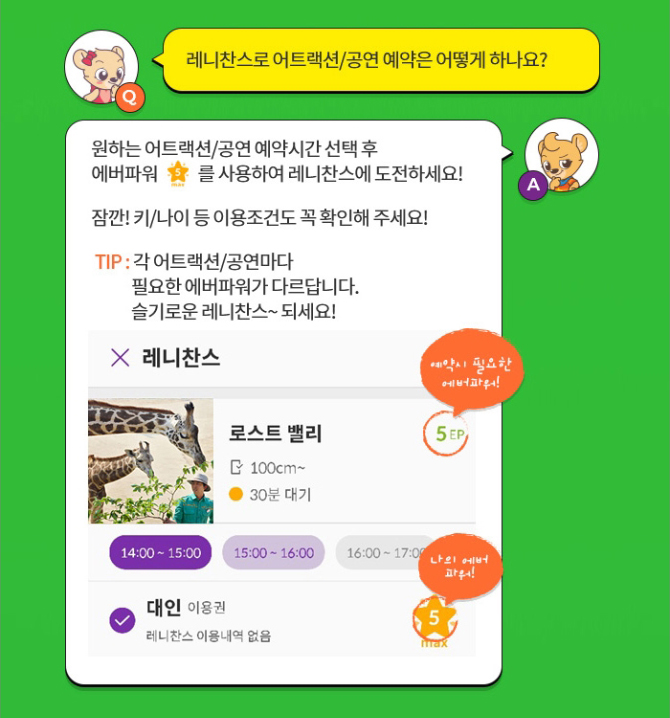 레니찬스는 인기있는 놀이기구를 줄서지 않고