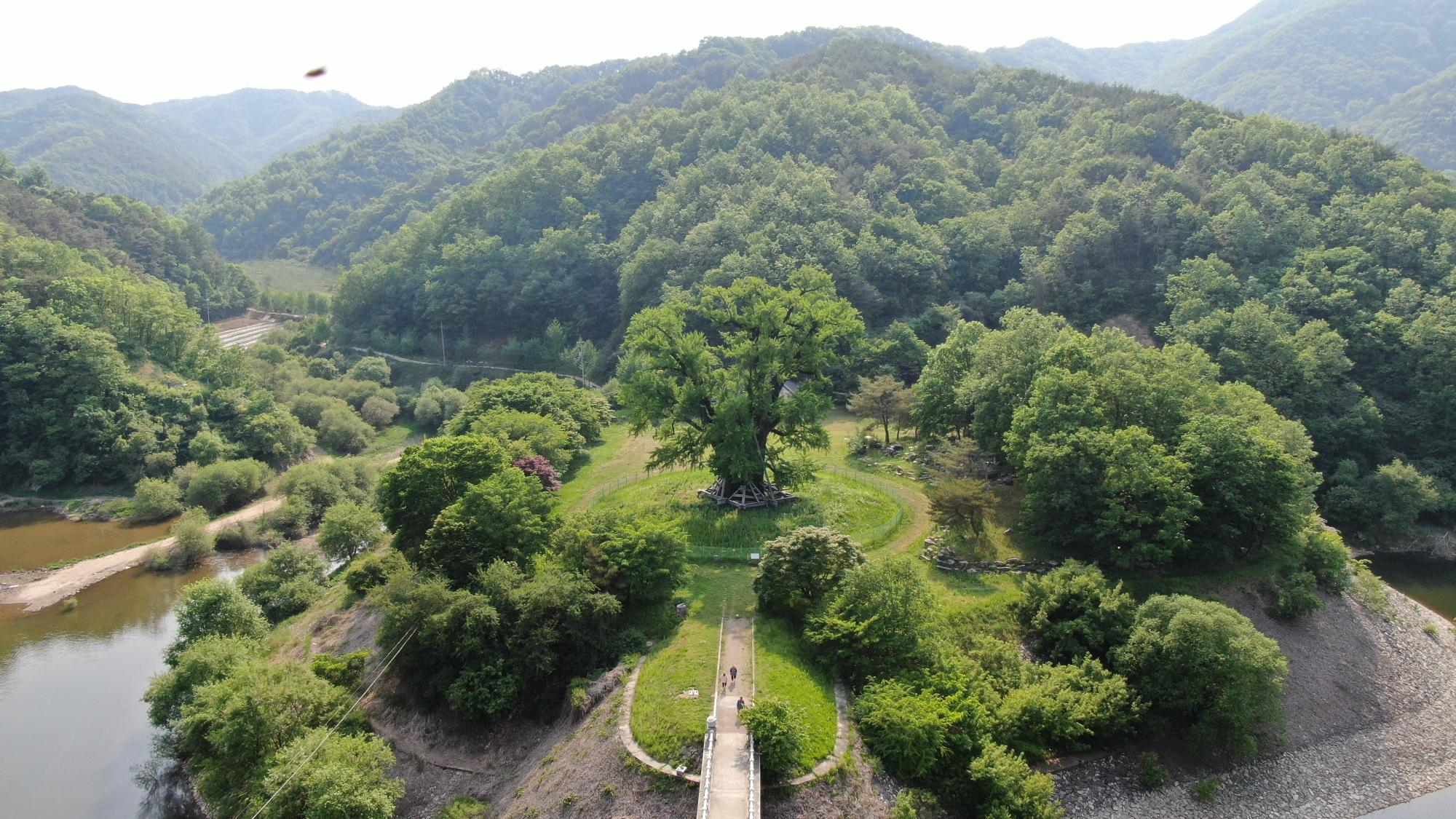 그러나 수몰 위기를 이겨내고 계절마다 색색깔 옷을 갈아입으며 예전보다 하늘과 15m 더 가까워진 채로 여전히 고향을 지키고 서 있다.
