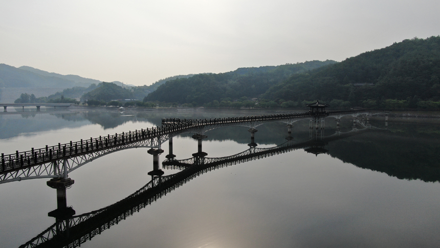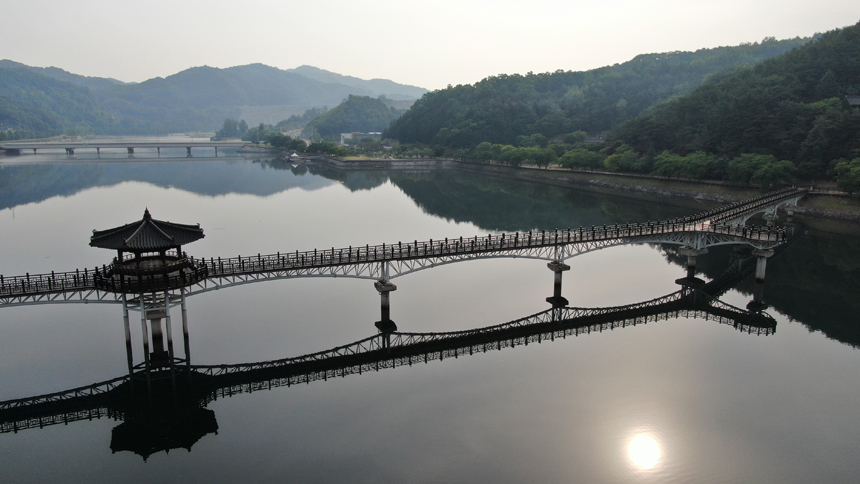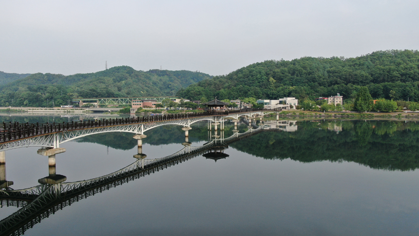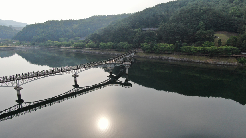 안동호에 비친 월영교의 반영을 보면 원이엄마 미투리와 꼭 닮아 있다.