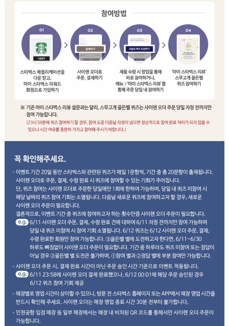 사이렌오더로 주문완료시 스타벅스리뷰 참여로