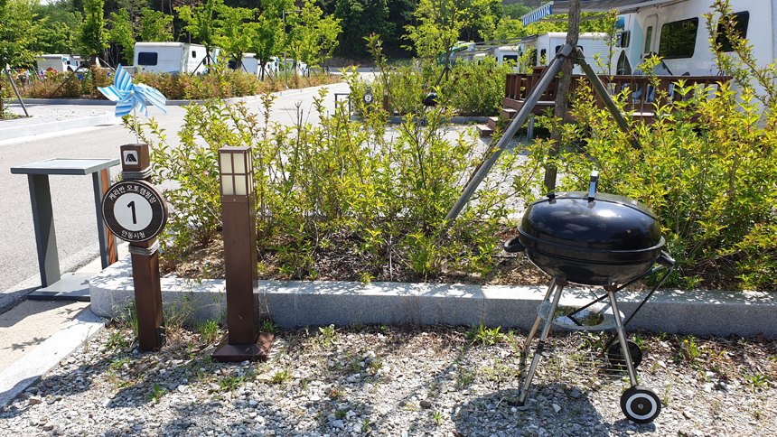 글램핑장 앞 바베큐 그릴