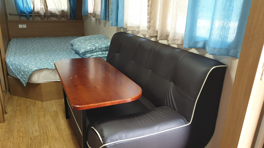 카라반 안으로 들어가 본다.