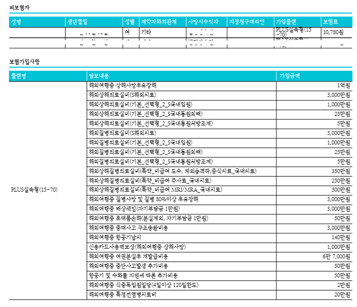 같은조건으로 지난번 4월여행때 여행자보험 가입한