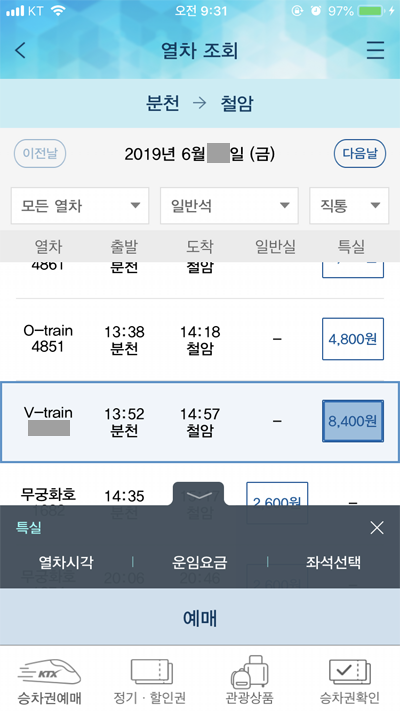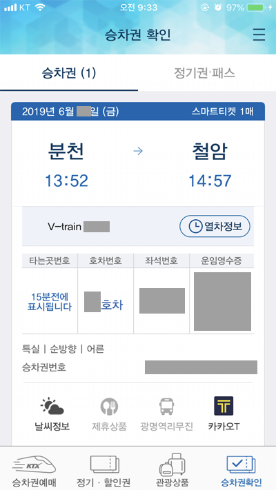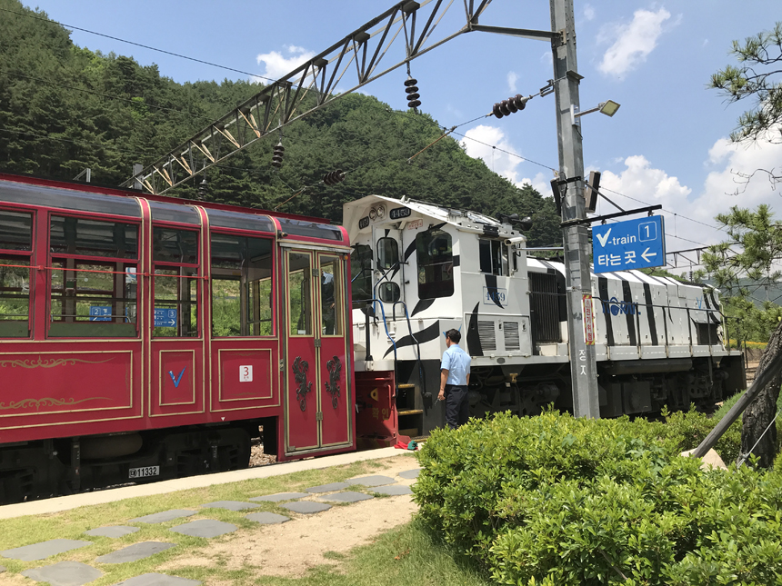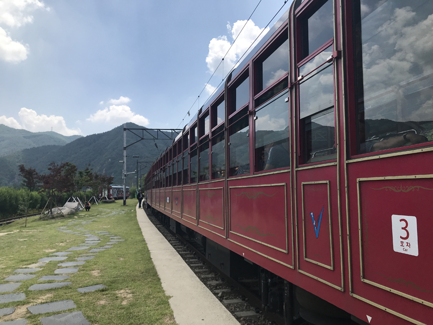 얼마 후 중부내륙관광열차가 먼저 출발하고 뒤이어 V-train 탑승 시간을 알리는 안내방송이 나왔다.