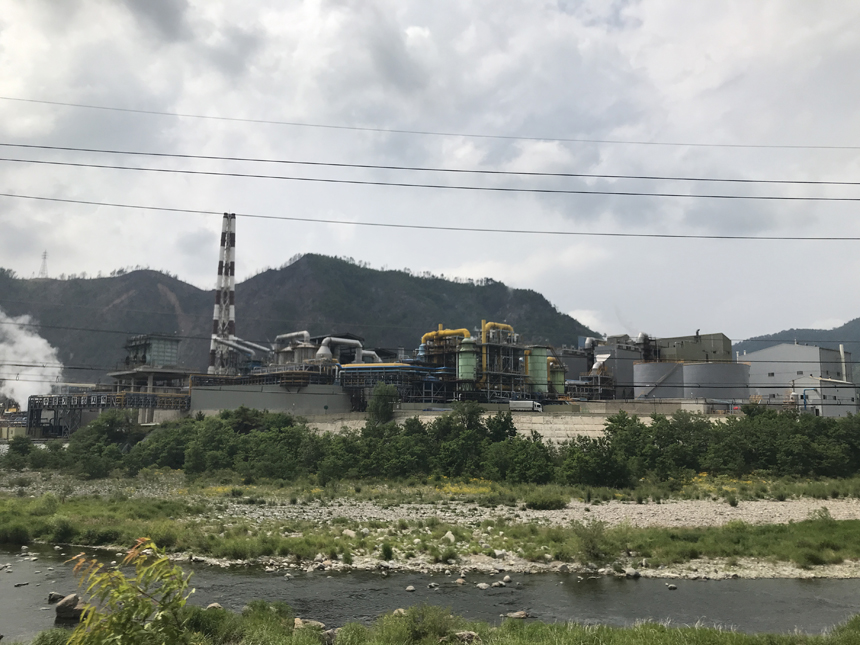 봉화 석포 영풍제련소에 다다르자 창밖으로 흰 자작나무가 보인다.