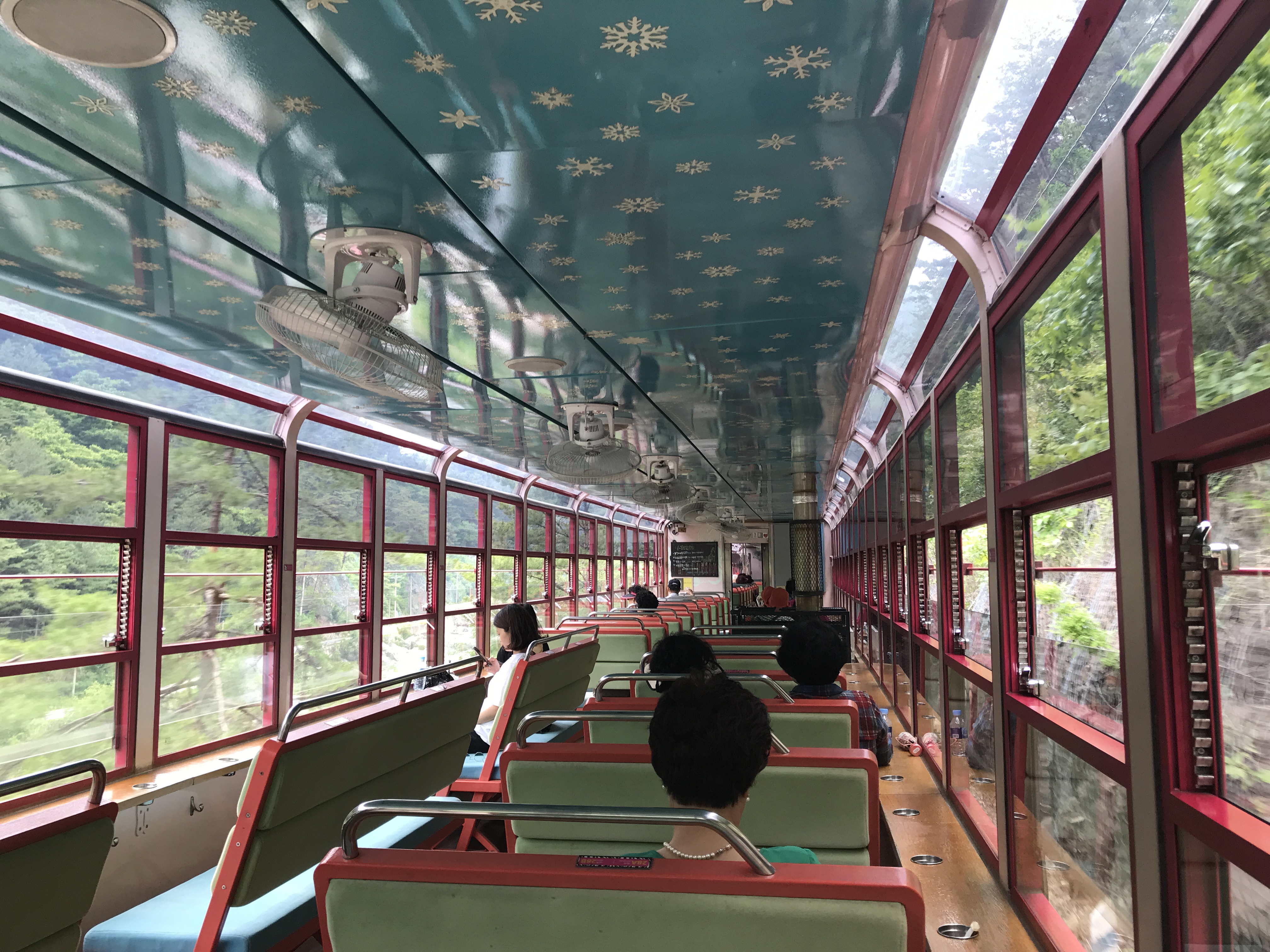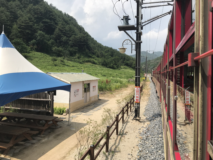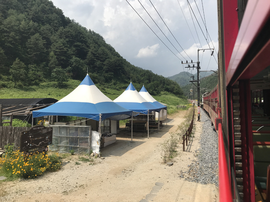 커텐이 없는 객차의 큰 유리창은 백두대간의 비경을 감상하기에는 더없이 좋으나 한여름의 뙤약볕을 막아주지는 못한다.