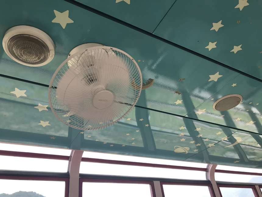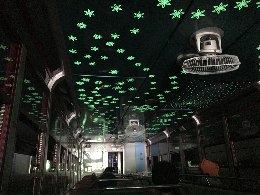 1호차, 3호차의 객차 천장에는 야광 스티커가 붙어 있어 굴을 지날 때 마다 열차는 별천지가 된다.