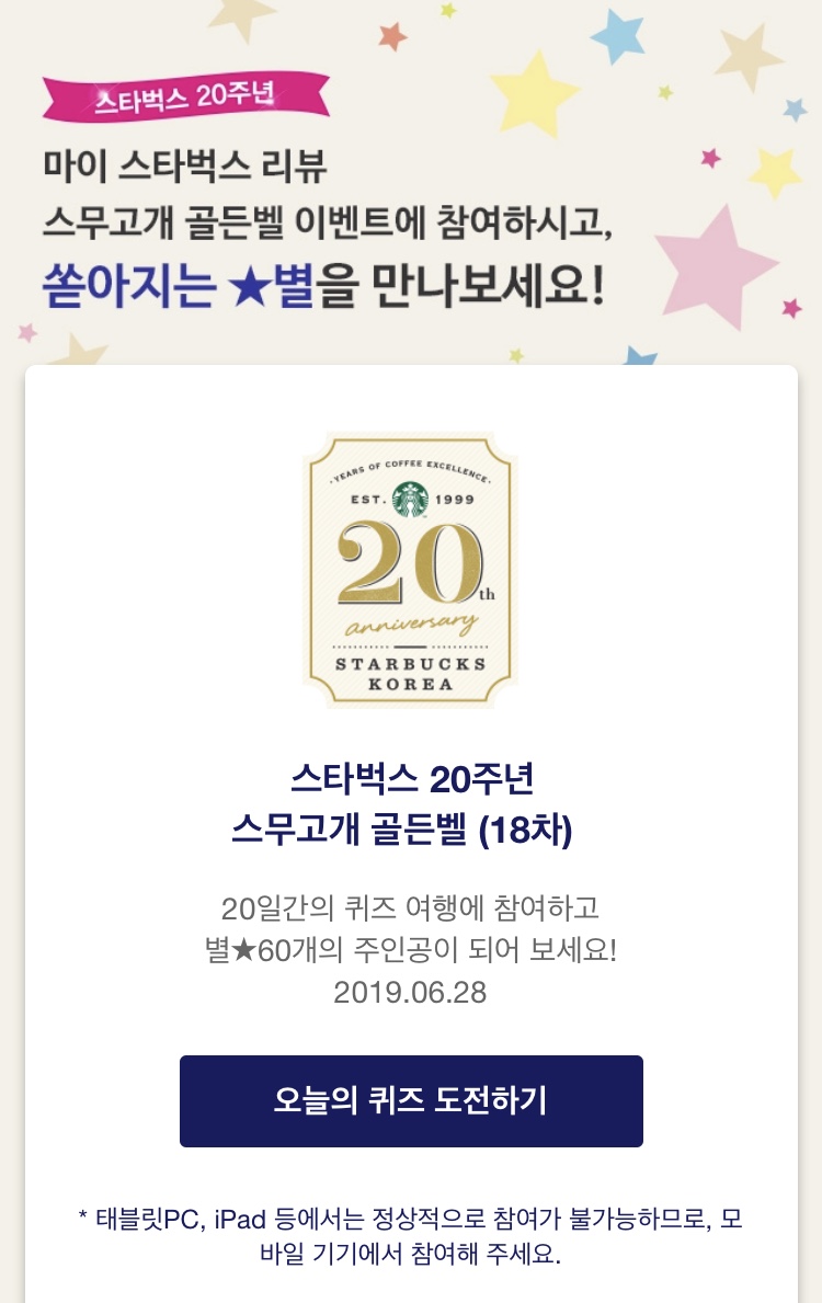 스타벅스 골든벨 18차 (6월28일) by 세상 밖으로 2019. 6. 28. 반응형 스타벅스 골든벨 18차 (6월28일) 18차정답 청담스타R 스타벅스 청담스타R에서 별적립 2배 받으세요 반응형 공유하기 게시글 관리 생각과 실천 댓글
