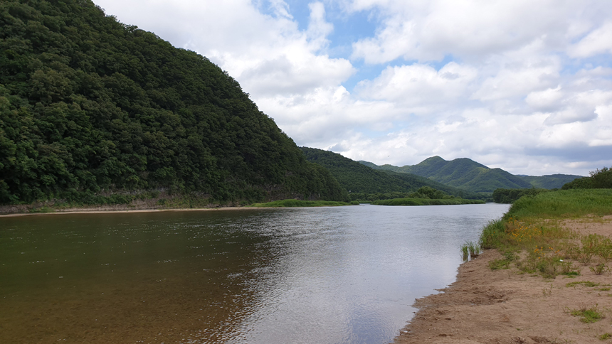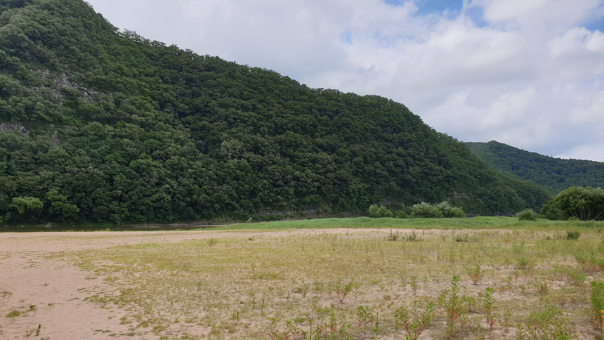 병산서원 앞, 낙동강변에는 넓은 모래사장(백사장)이 있다.