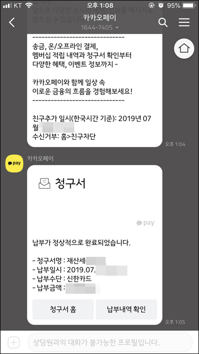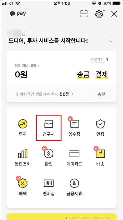 카카오톡 페이에서 2번째 [청구서]를 선택한다.