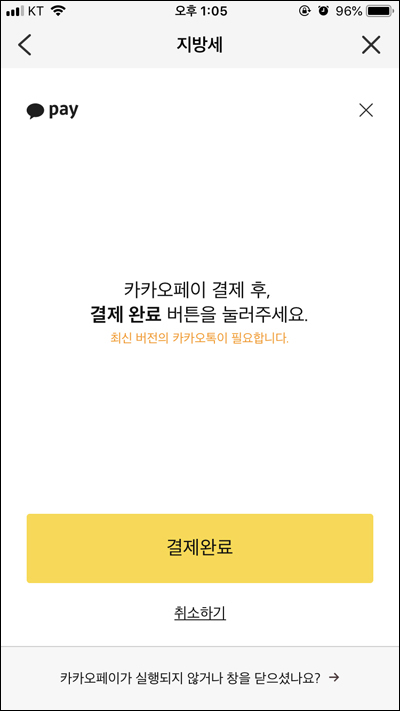 카카오페이에 등록된 카드 중 하나를 선택하고 [결제하기]