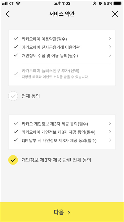 첫번째 칸 4번째 선택 항목을 제외하고 모두 선택 후 [다음].