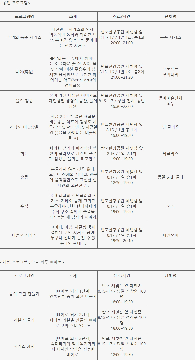 한여름 밤 한강에서 펼쳐지는 서커스의 세계로 당신을 초대합니다!