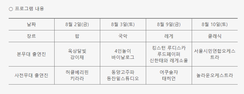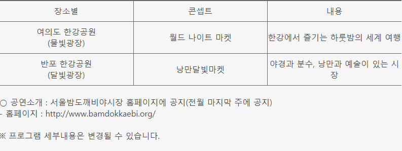 장소 : 여의도 한강공원 너른들판 특설무대, 물빛무대