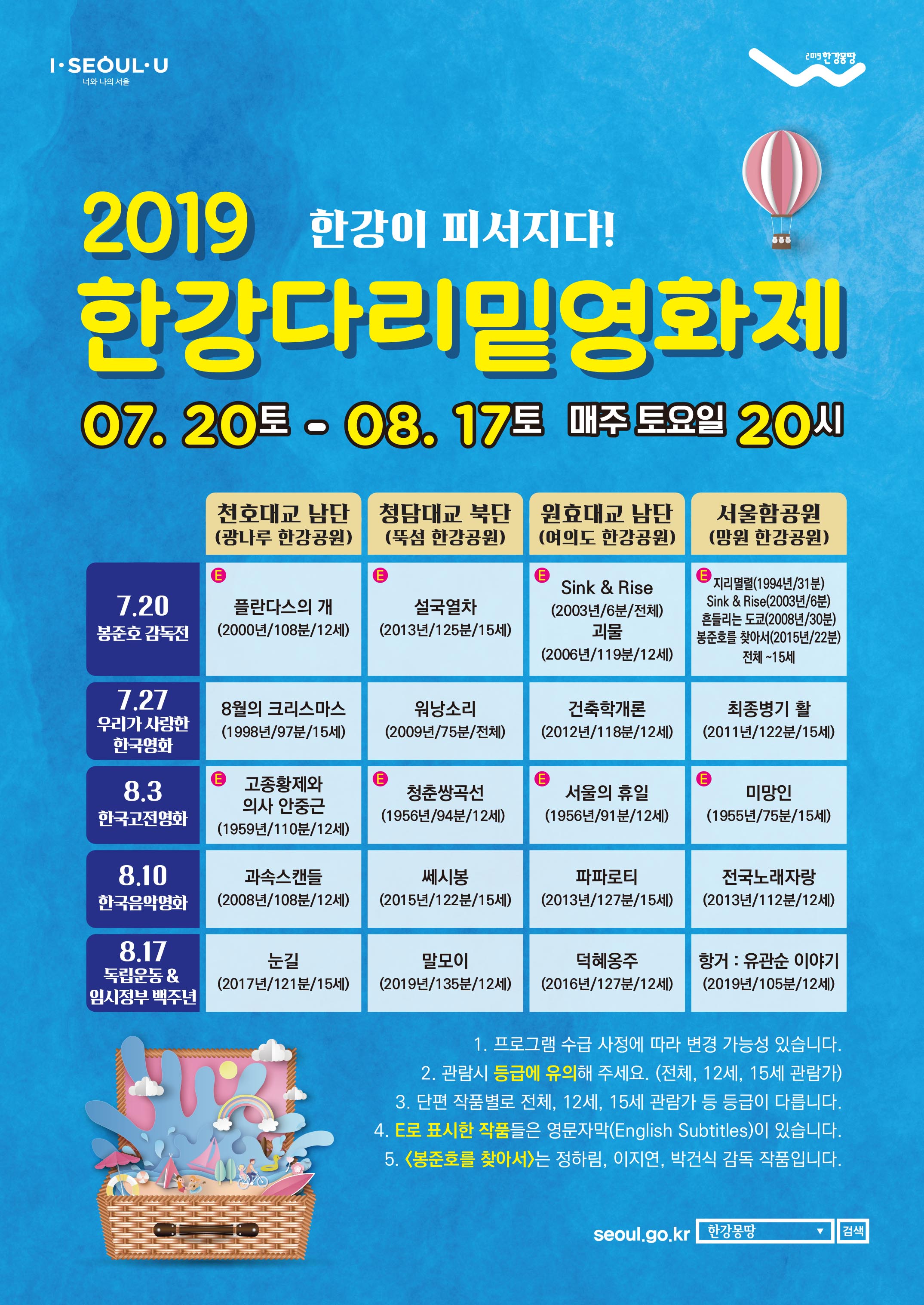 열대야의 괴로움을 날려 줄 한강 다리밑의 변신! 한 여름에 한강에서만 만날 수 있는 가장 시원하고 이색적인 영화관, 한강 다리밑 영화제에서 매주 다양한 주제의 영화를 무료로 감상하세요.