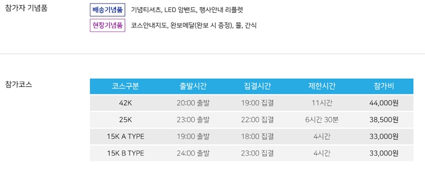 모집인원 : 2,019 (가족코스 - 16km 808명, 몽땅코스 - 51km 1,211명)