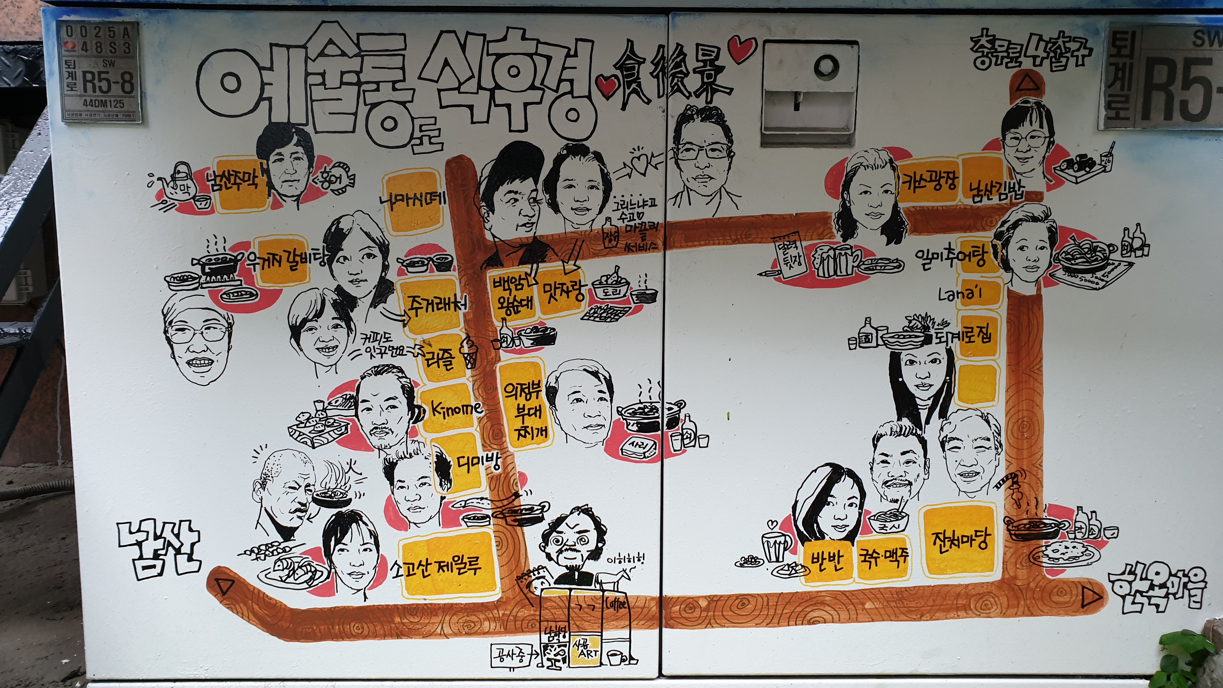 충무로역에서 멀지 않은 곳에 필동 문화예술거리, 스트리트 뮤지엄이 있다.