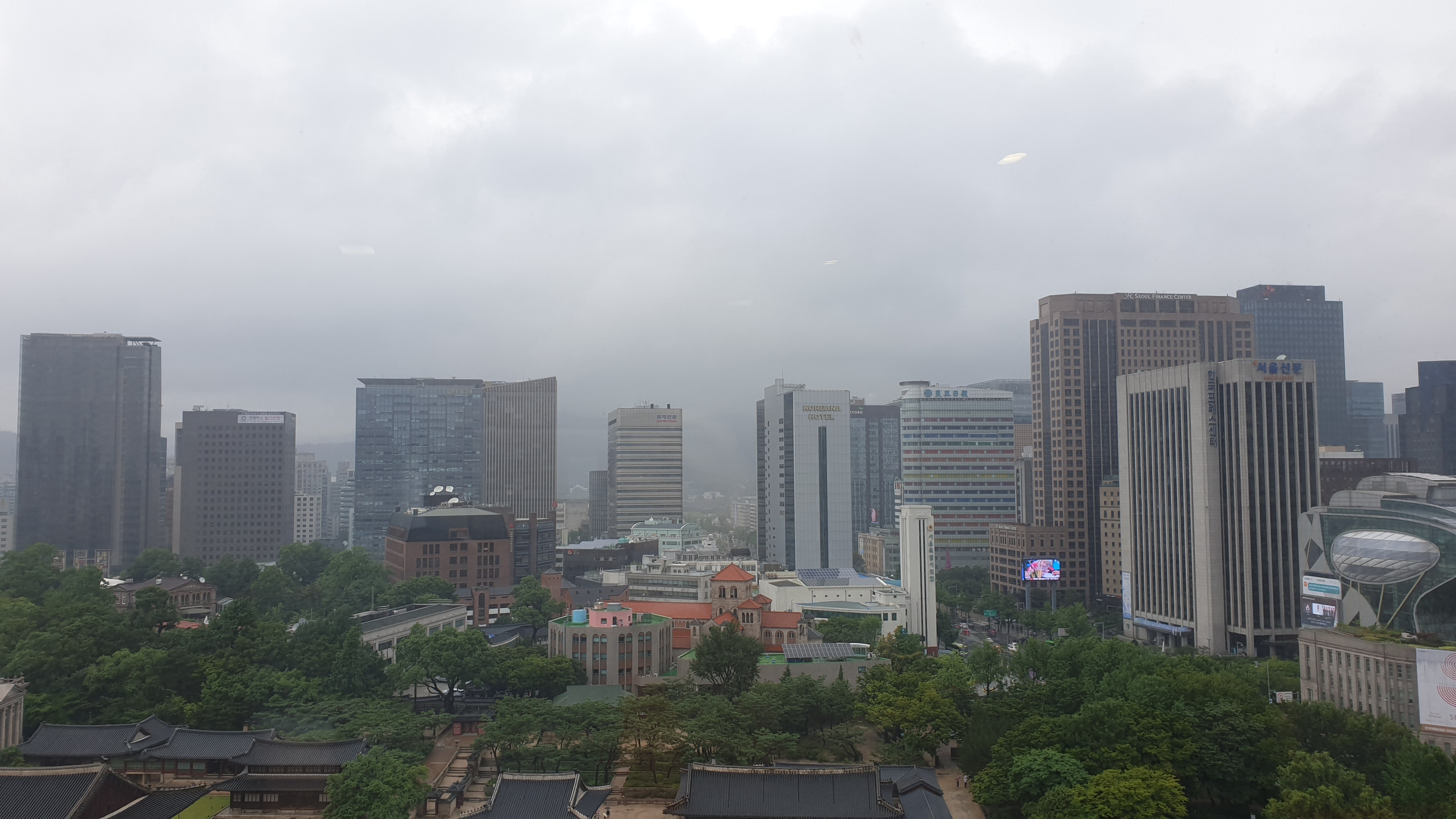 푸른하늘과 하얀 구름, 높게 올라간 빌딩 숲 앞으로 고풍스런 고궁과 구한말 서양식 건물의 조화가 멋진, 그런 풍경을 보고 싶었는데 날씨가 따라주지 않는다.