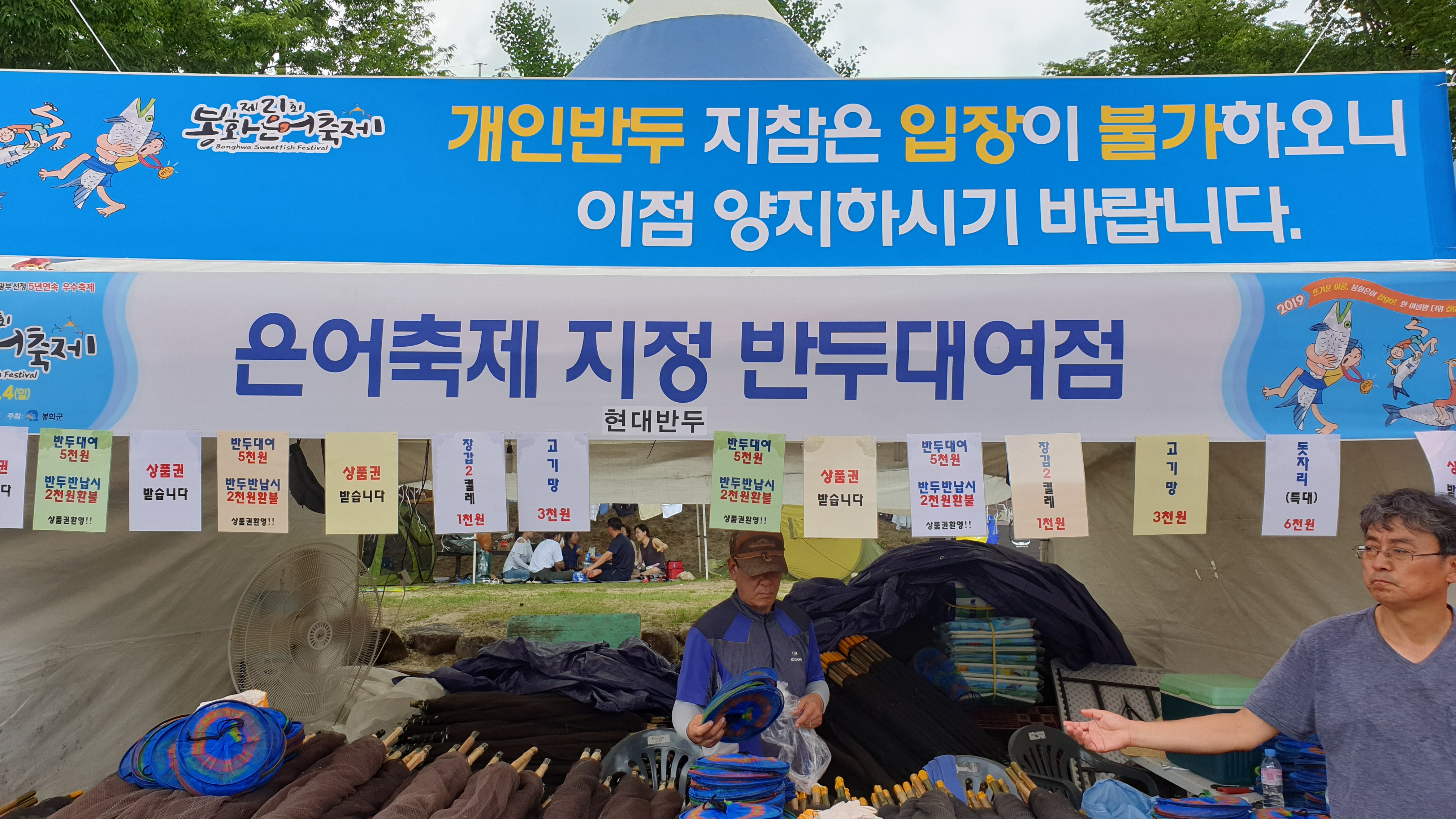반두대여점에서 은어축제 공식 반두(?)만 이용 가능.