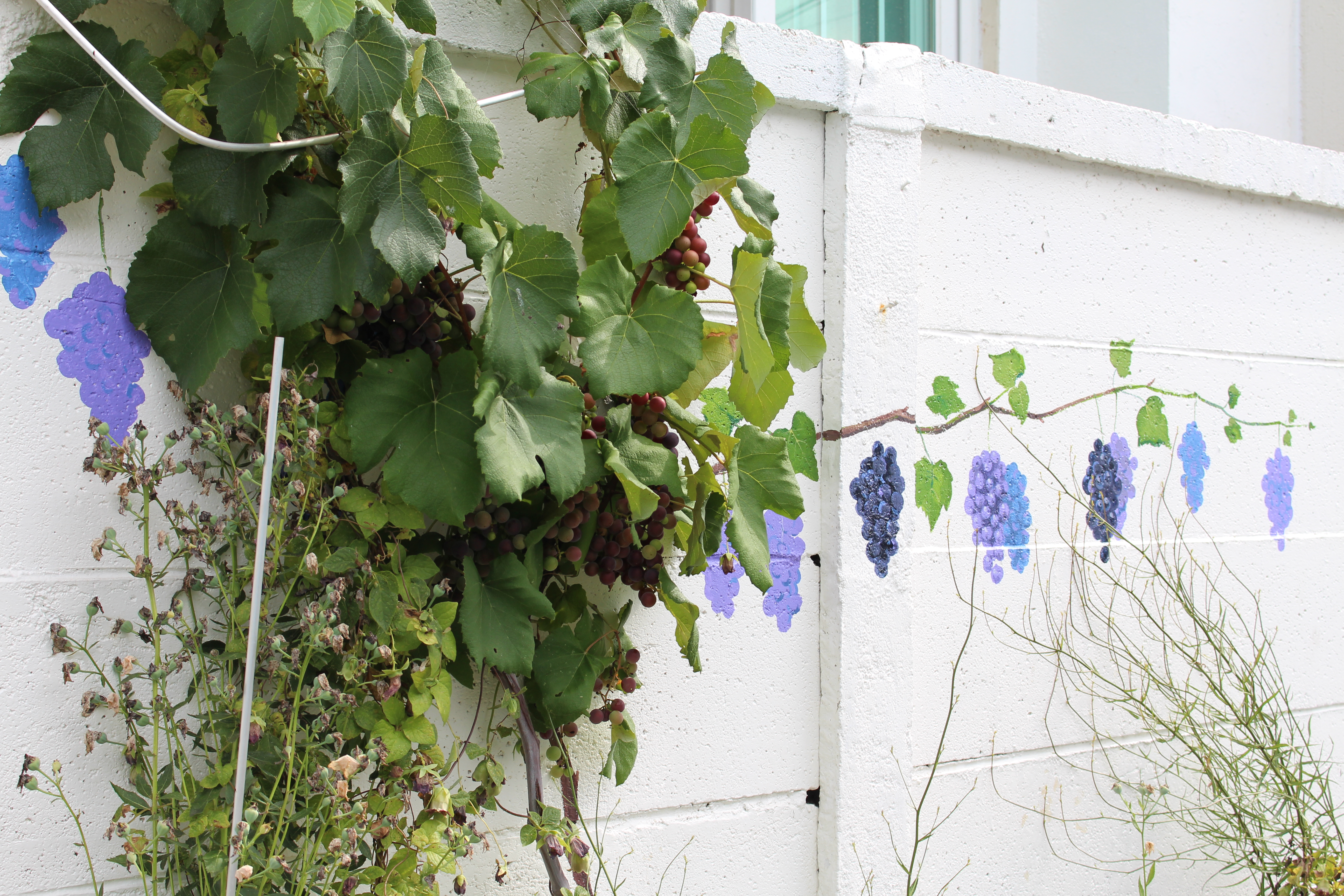 포도그림위에 진짜 포도가 주렁주렁