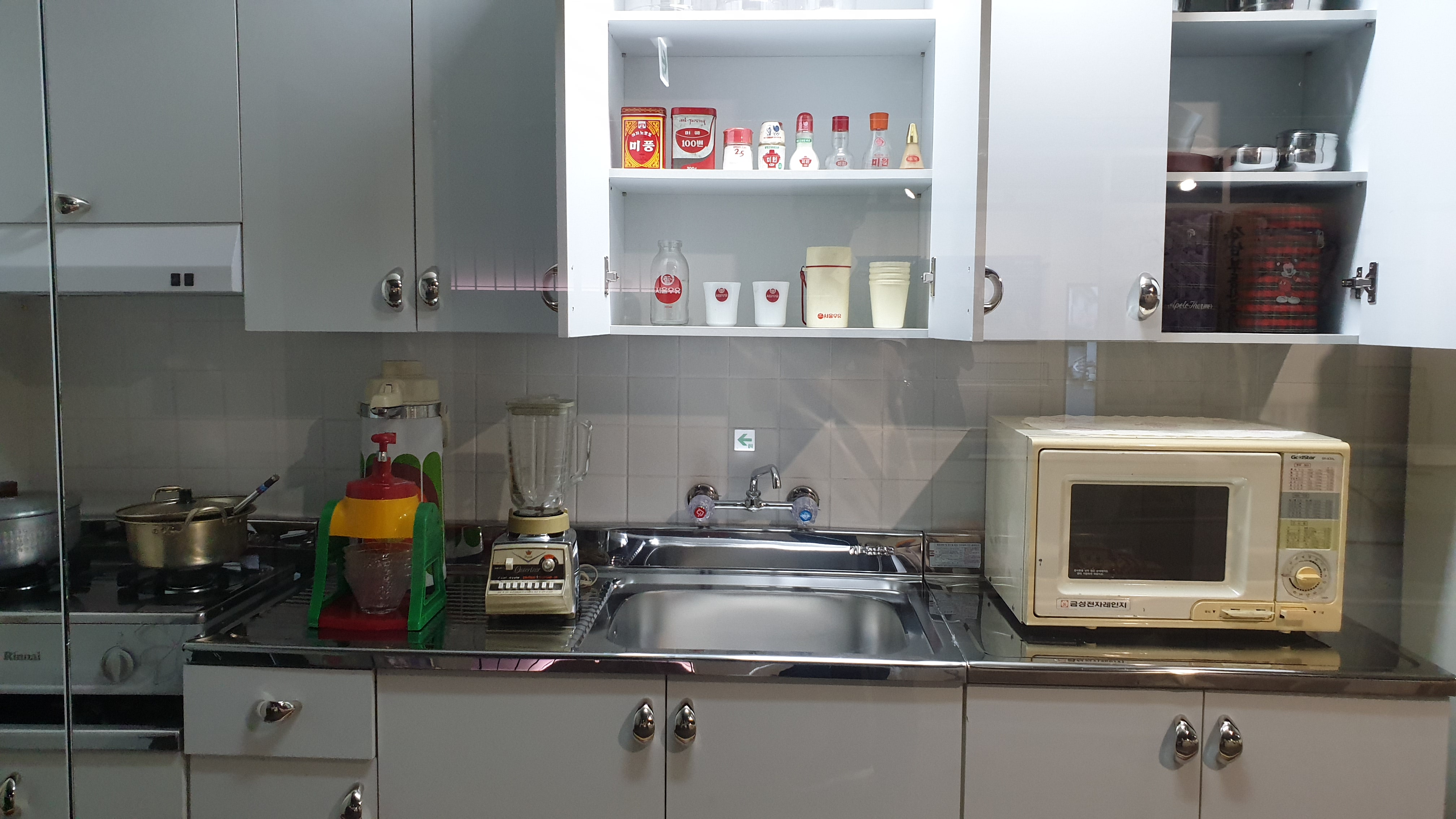 응답하라에서 많이 보았던 주택이나 아파트의 거실 풍경과 입식개수대 스타일의 부엌.