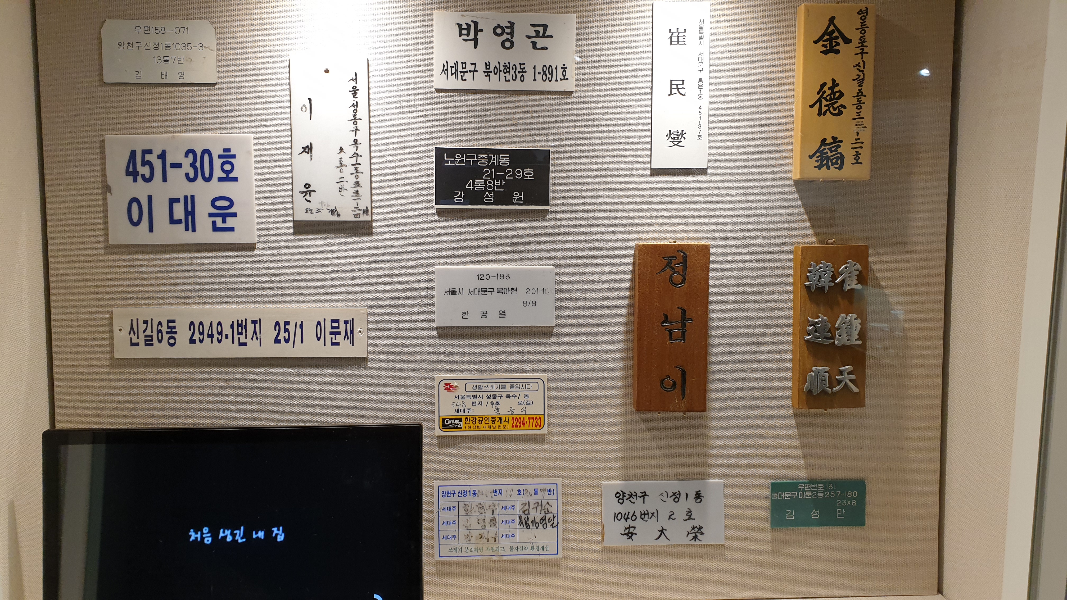 나무나 대리석, 아크릴 등 다양한 소재에 이름을 새기거나 적어서 문패를 만들었다.