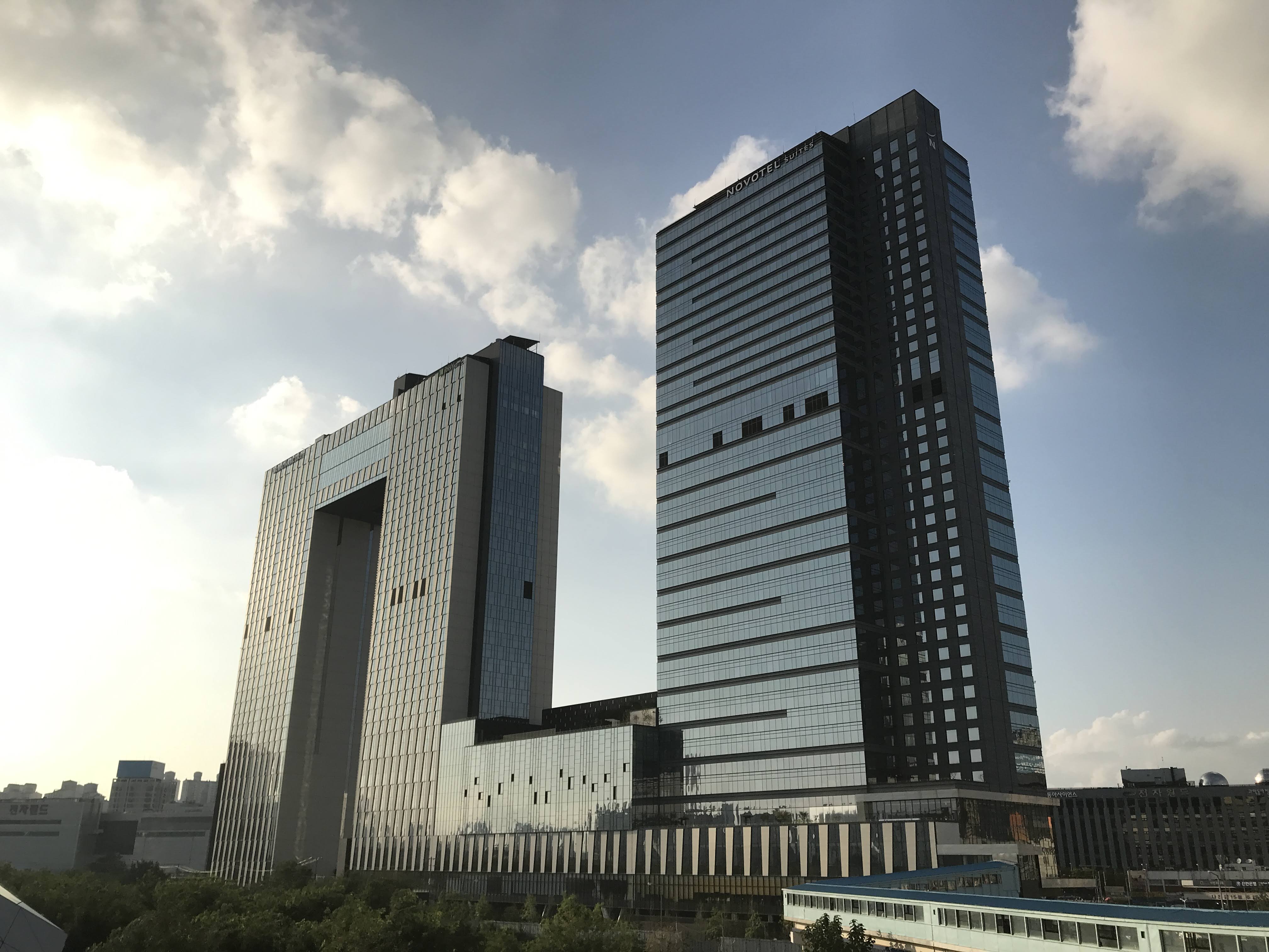 마치 ㄹ자를 옆으로 눕혀놓은 것 처럼 보이는 저 곳에 그랜드 머큐리 앰배서더, 노보텔 스위트 앰배서더, 노보텔 앰배서더, 이비스 스타일 이렇게 4개의 호텔이 있다.