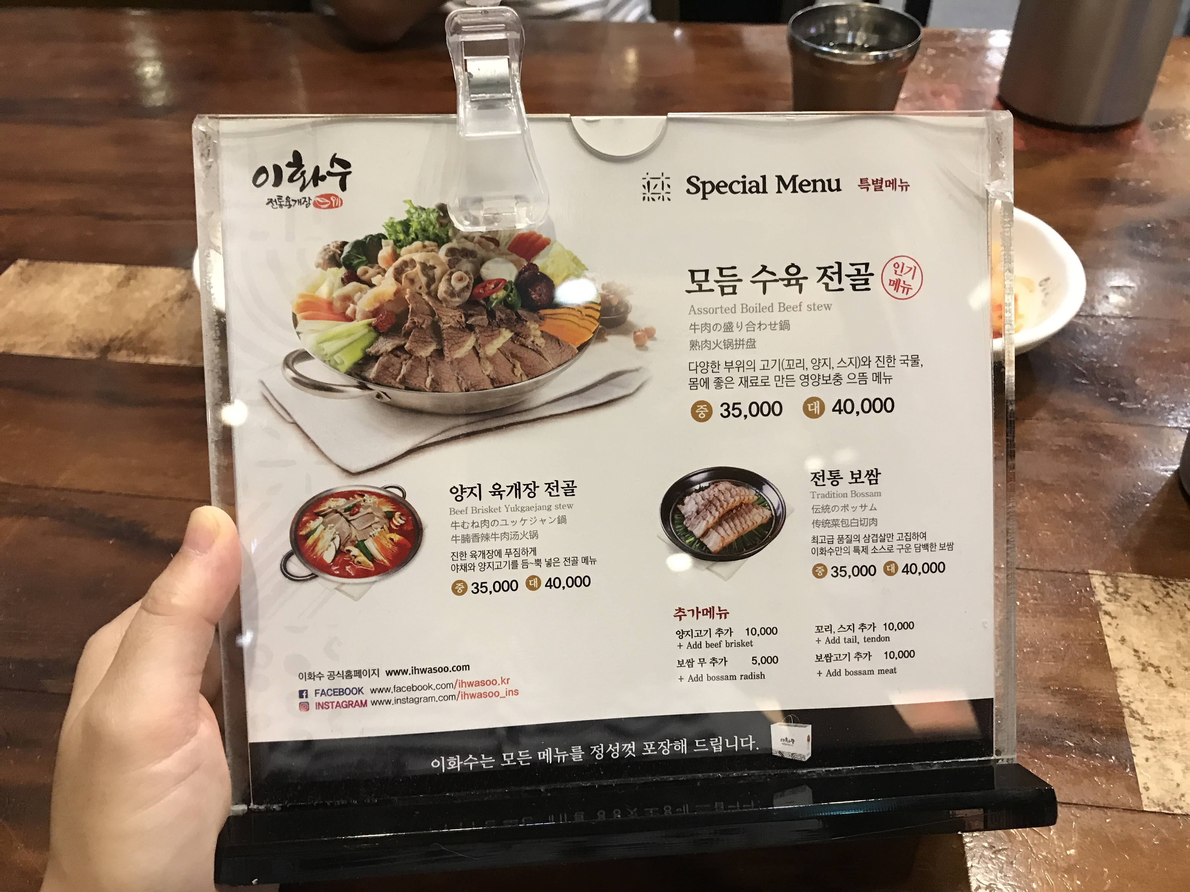 작년, 대전에서 수육전골을 엄청 맛있게 먹었던게 생각나 용산 아이파크몰에 있는 수 많은 맛집을 두고 다시 찾은 이화수전통육개장.