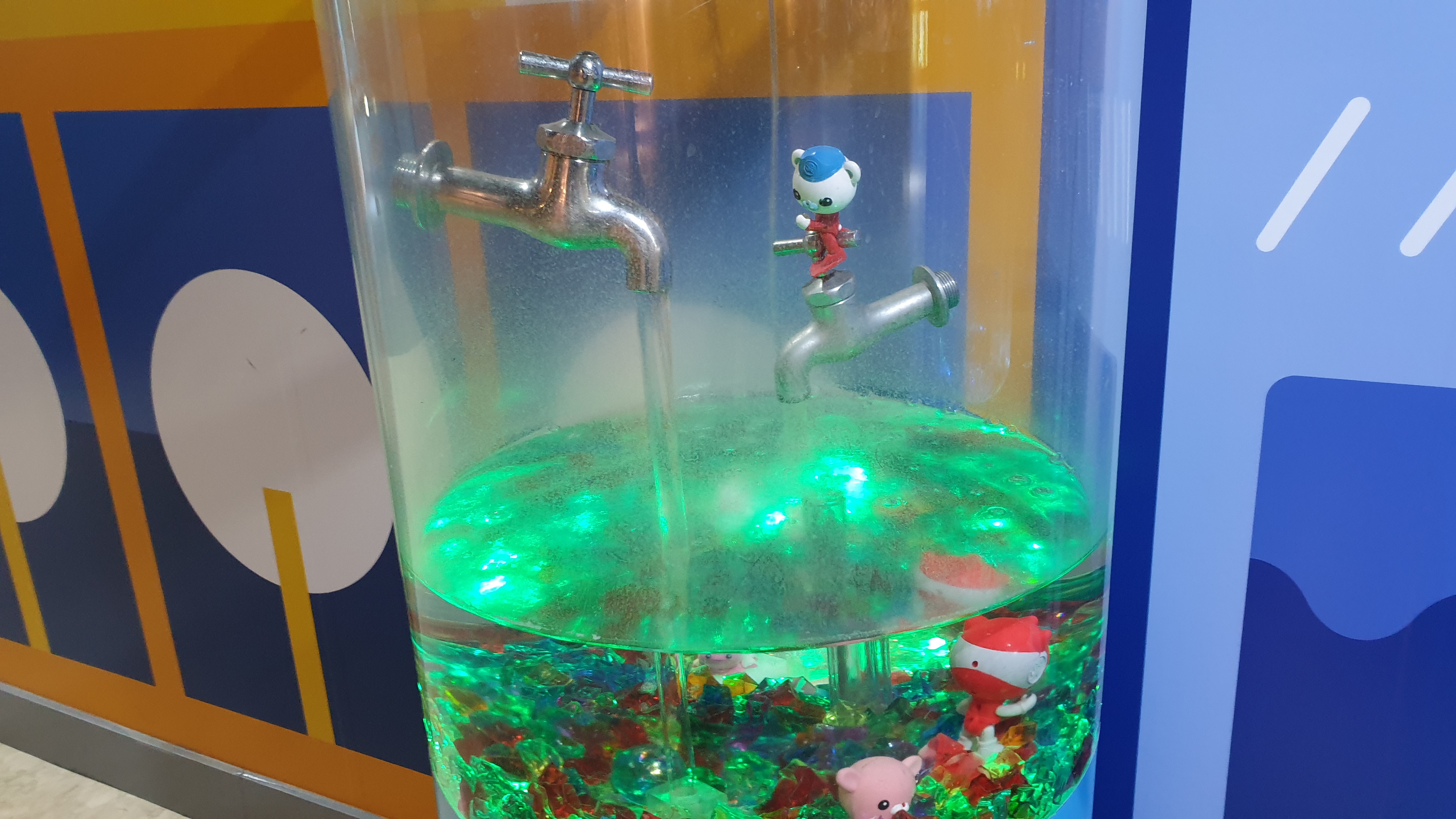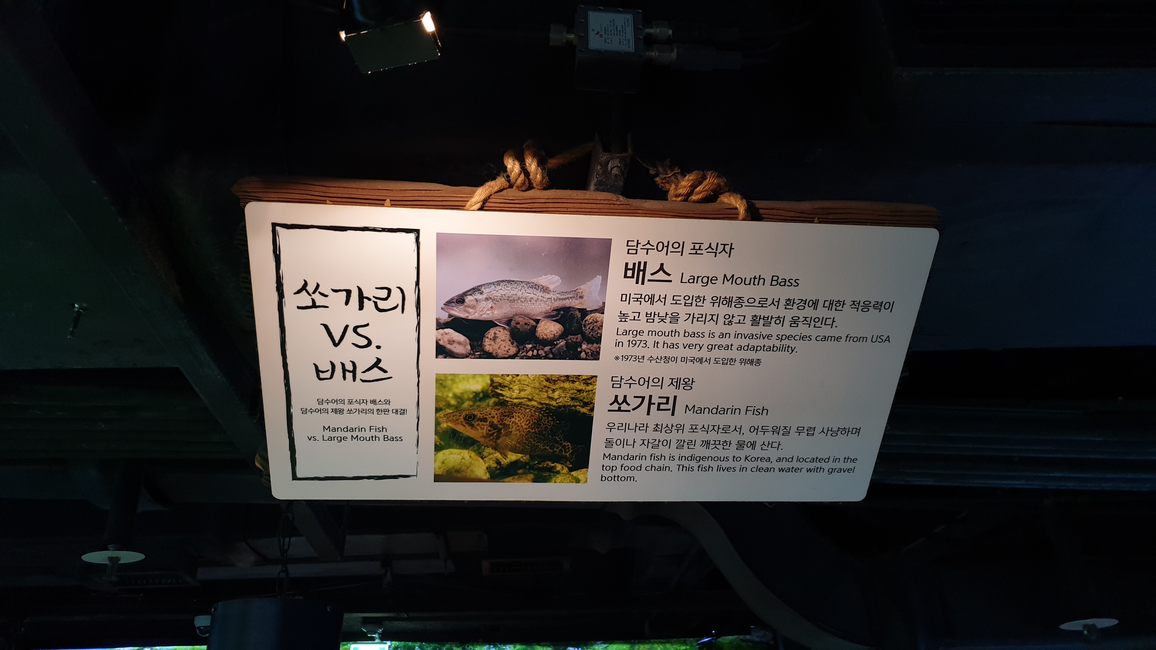 강에서 시작해 바다로 나아가는 수중 여행 컨셉으로 구성된 전시관이라서 우선 민물에서 시작한다. 강으로 흘러가기 전, 논에 물을 대기 위해 옆에 조그많게 파두는 둠벙에서 시작해 계곡의 상류-중류-하류를 따라 댐에 이르기까지 민물의 흐름을 따라 가는 구성이다.