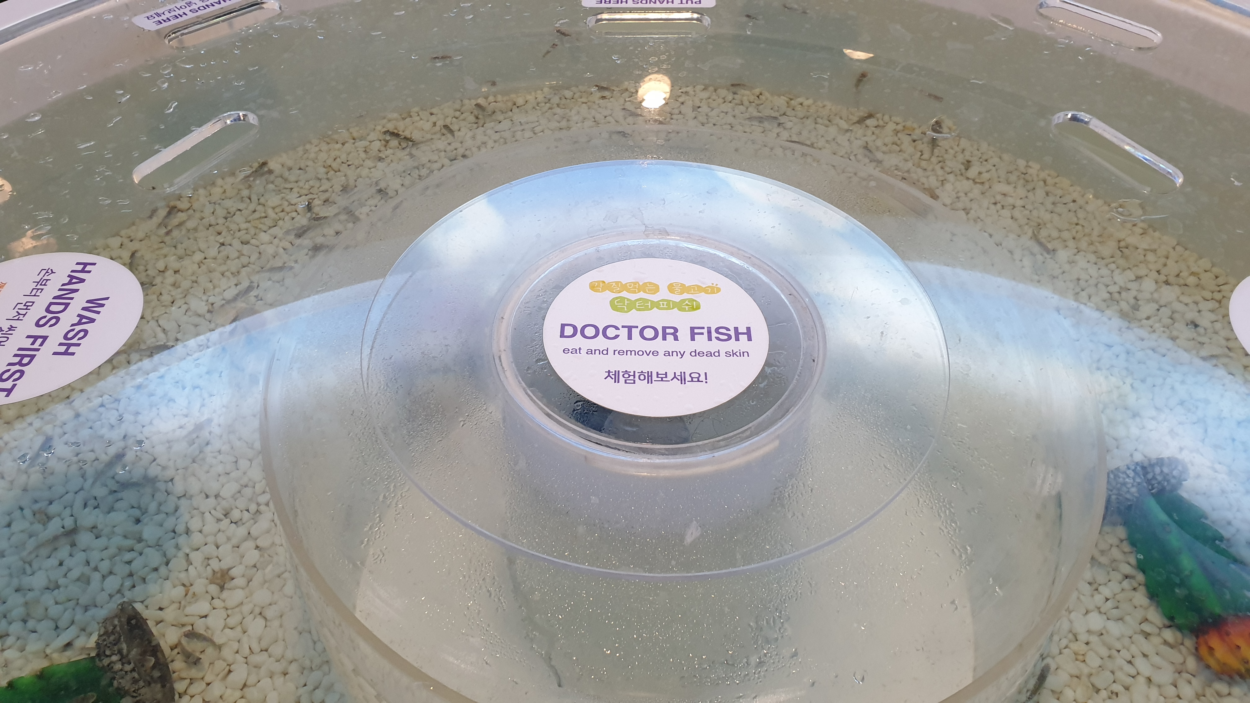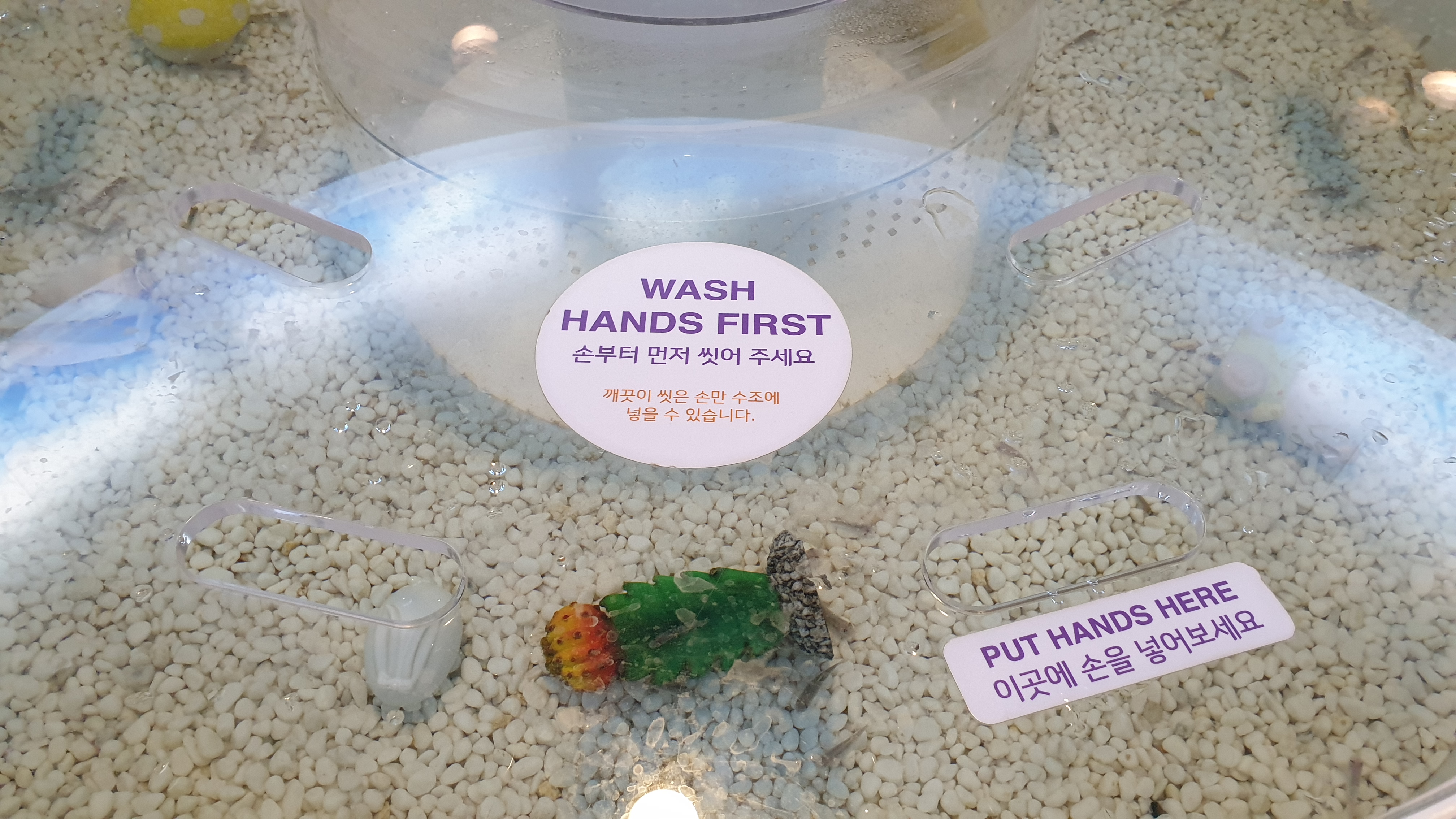 저기서 손을 깨끗이 씻은 후 직접 수중 생물을 만져보면서 관찰 할 수 있다.