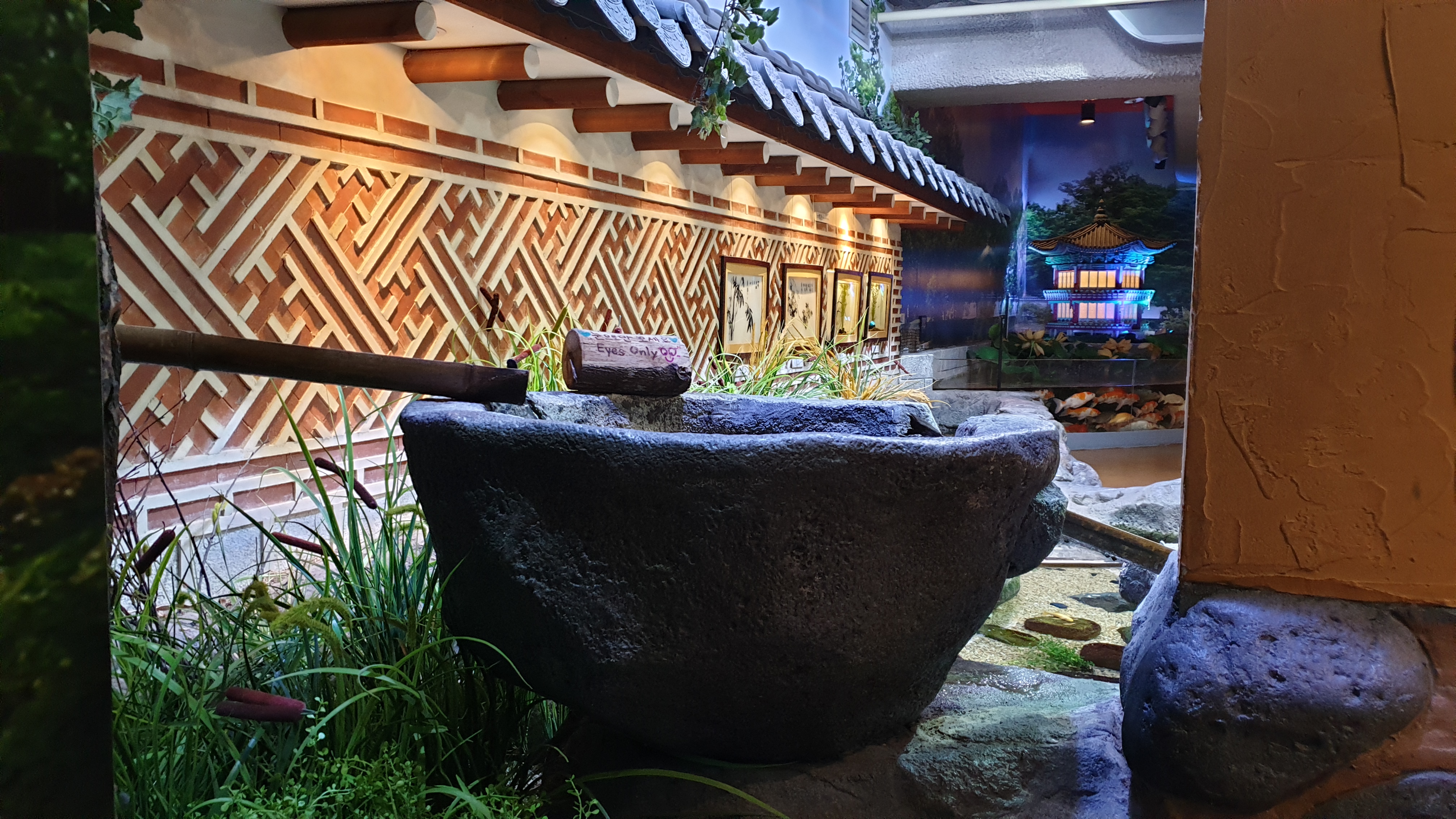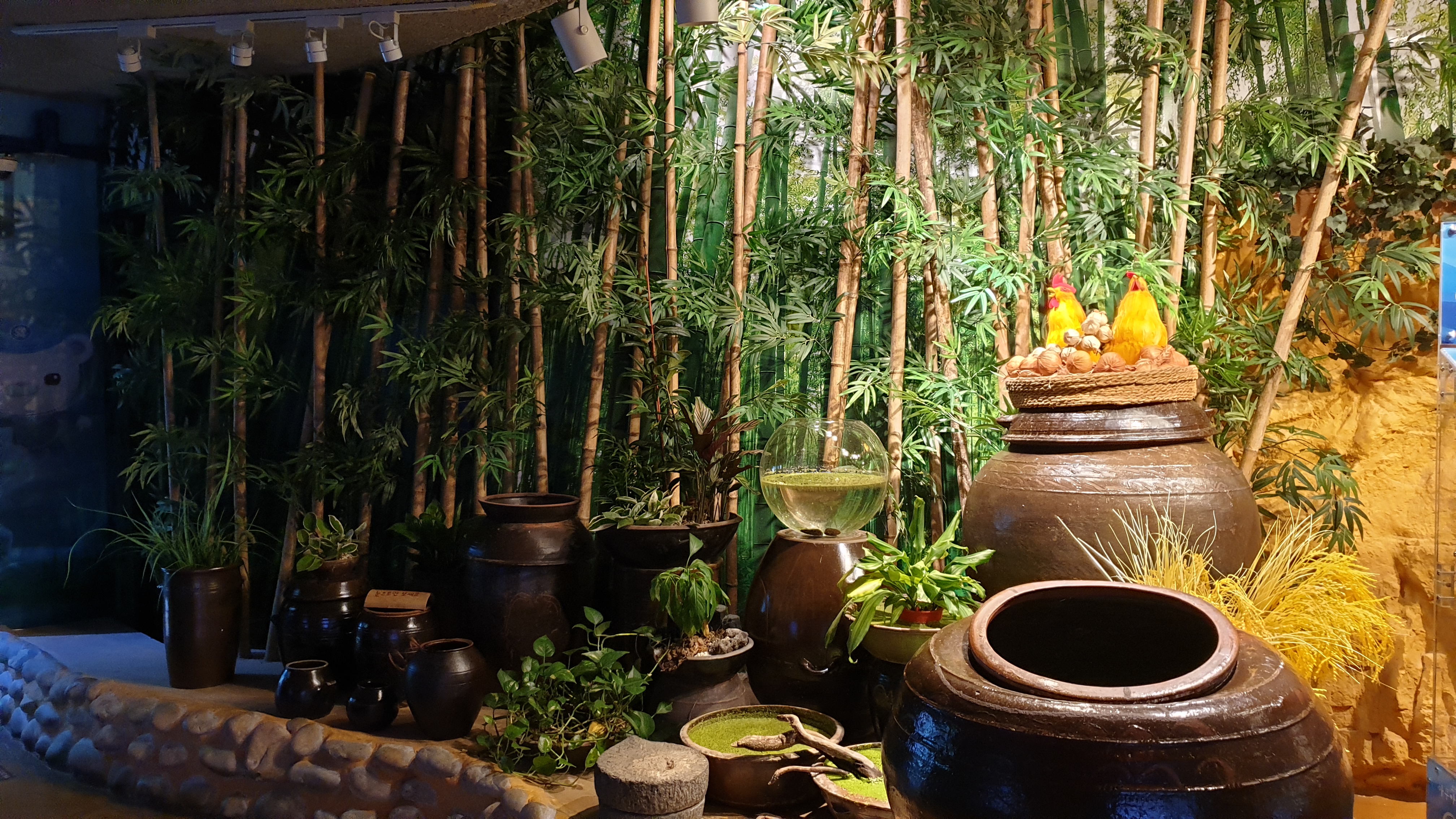 우물과 장독대, 대나무 숲과 같은 것들로 꾸며진 한국의 정원.