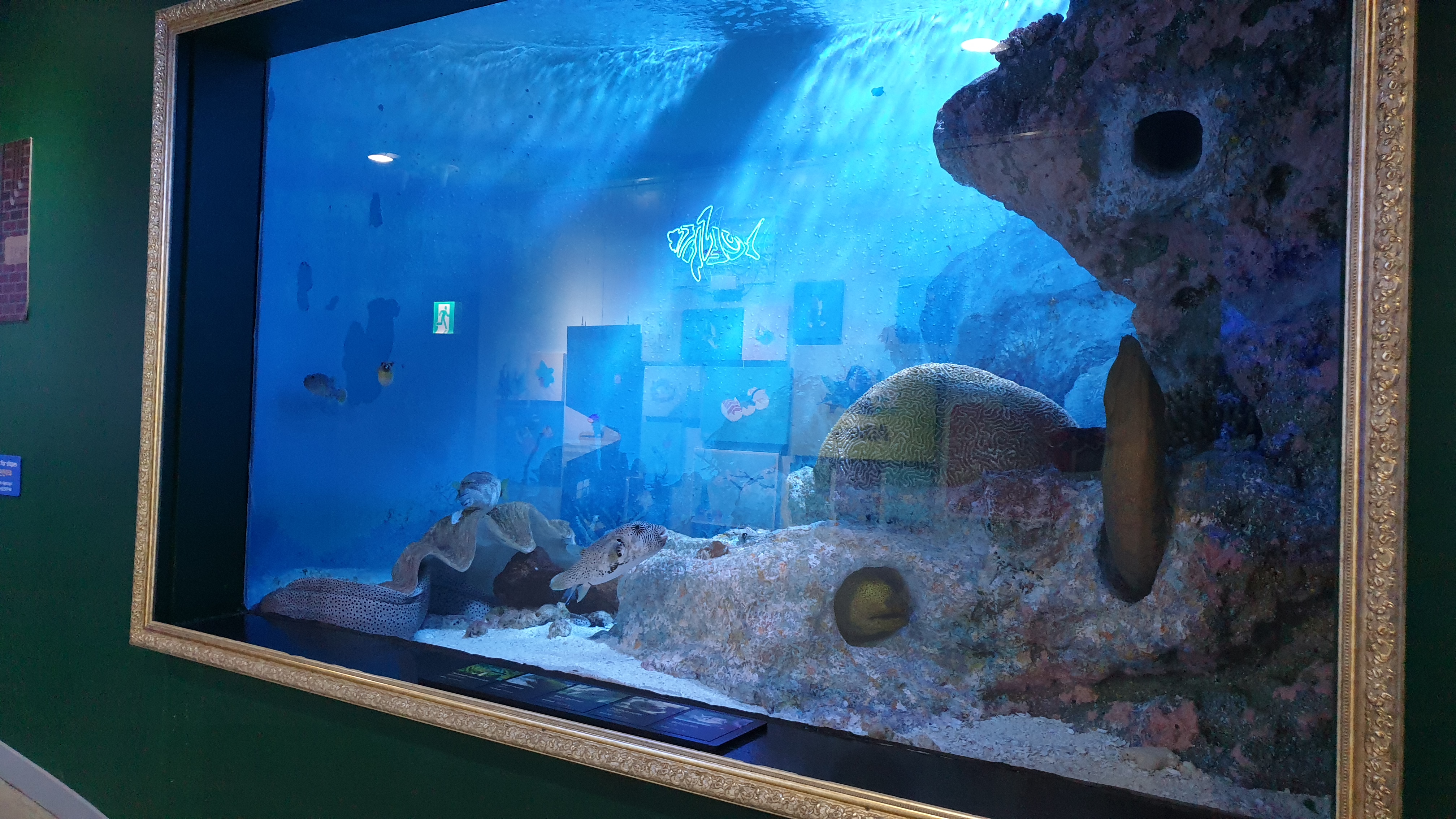 산호와 화려한 색의 열대어들이 살아있는 작품이 되는 산호 미술관.
