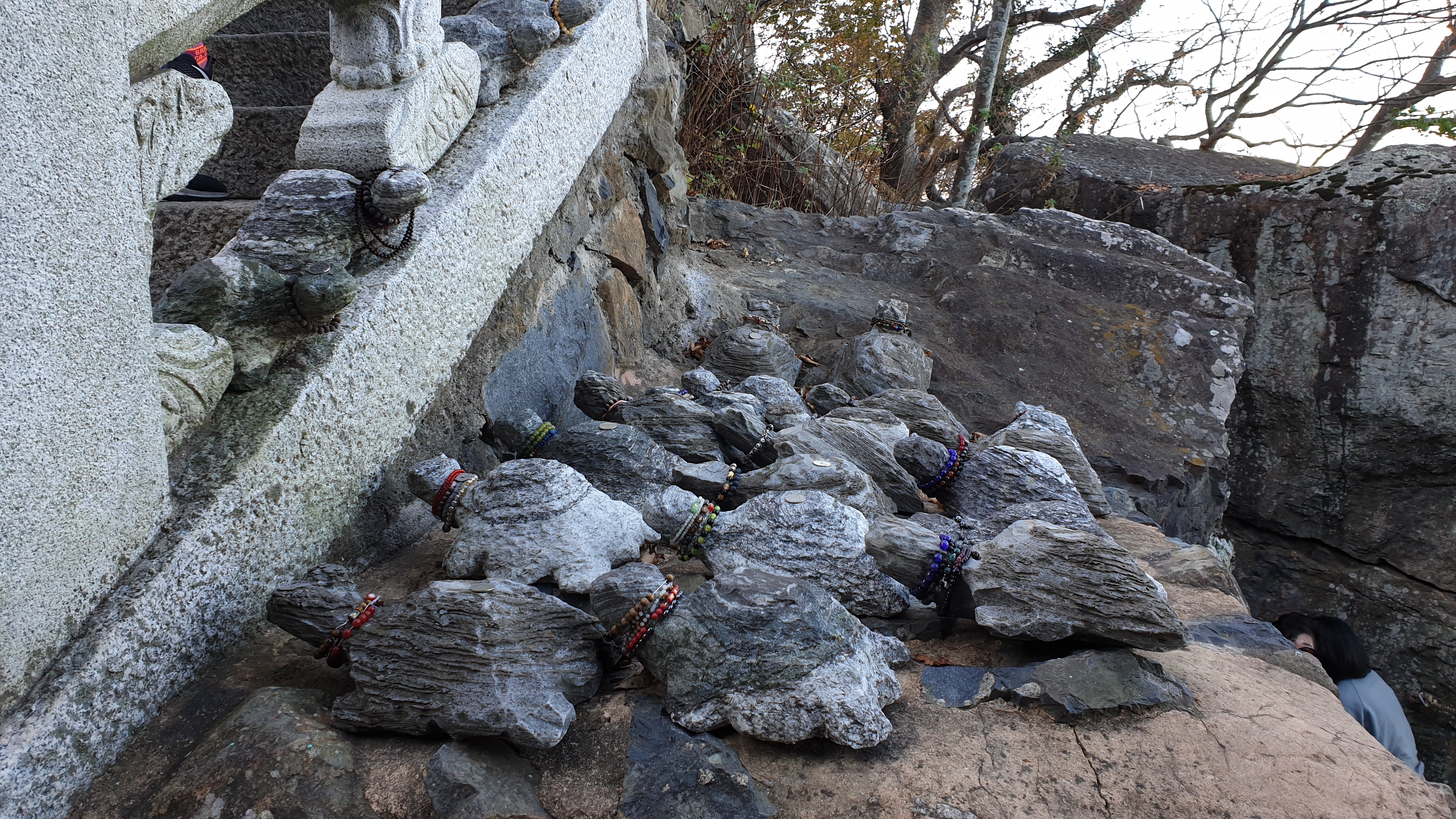 대웅전과 용왕전 사이 약수터 옆 바위, 관음전 뒷편 큰 바위에 동전을 붙이거나 조그만 거북이 등이나 머리에 동전을 올려놓기도 한다.