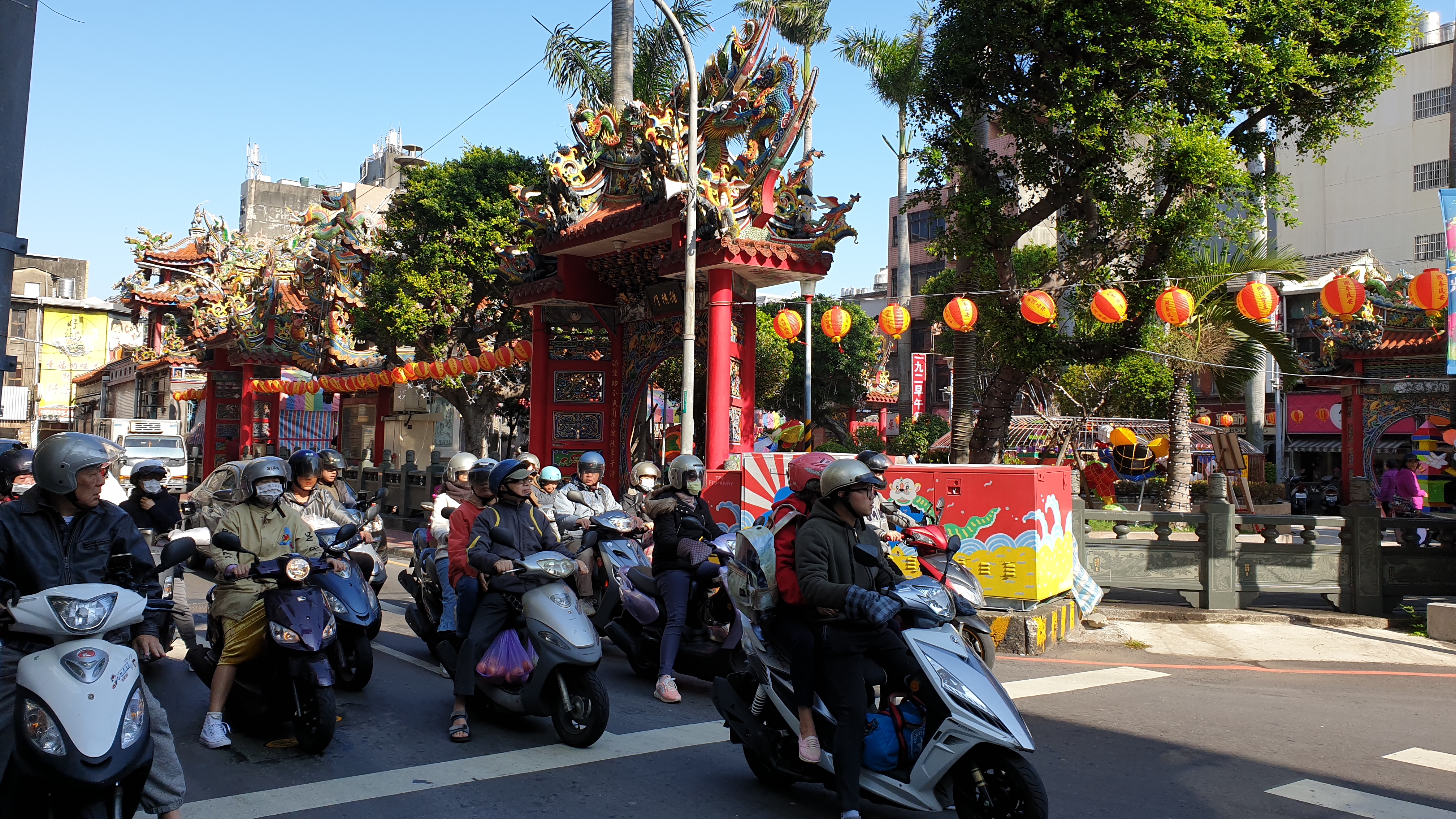 출근을 하고 있는 오토바이족(?)들, 대만은 직진 신호에 우축 횡단보도 파란불이 들어와도 우리나라와 마찬가지로 그냥 밀고 들어온다. 중국도 마찬가지이지만, 꼭 파란불 신호보다는 좌측에서 오는 차를 살펴야 한다. 몇 번을 시도해봤는데 절대 안 선다. 꼭! 좌측을 보길.