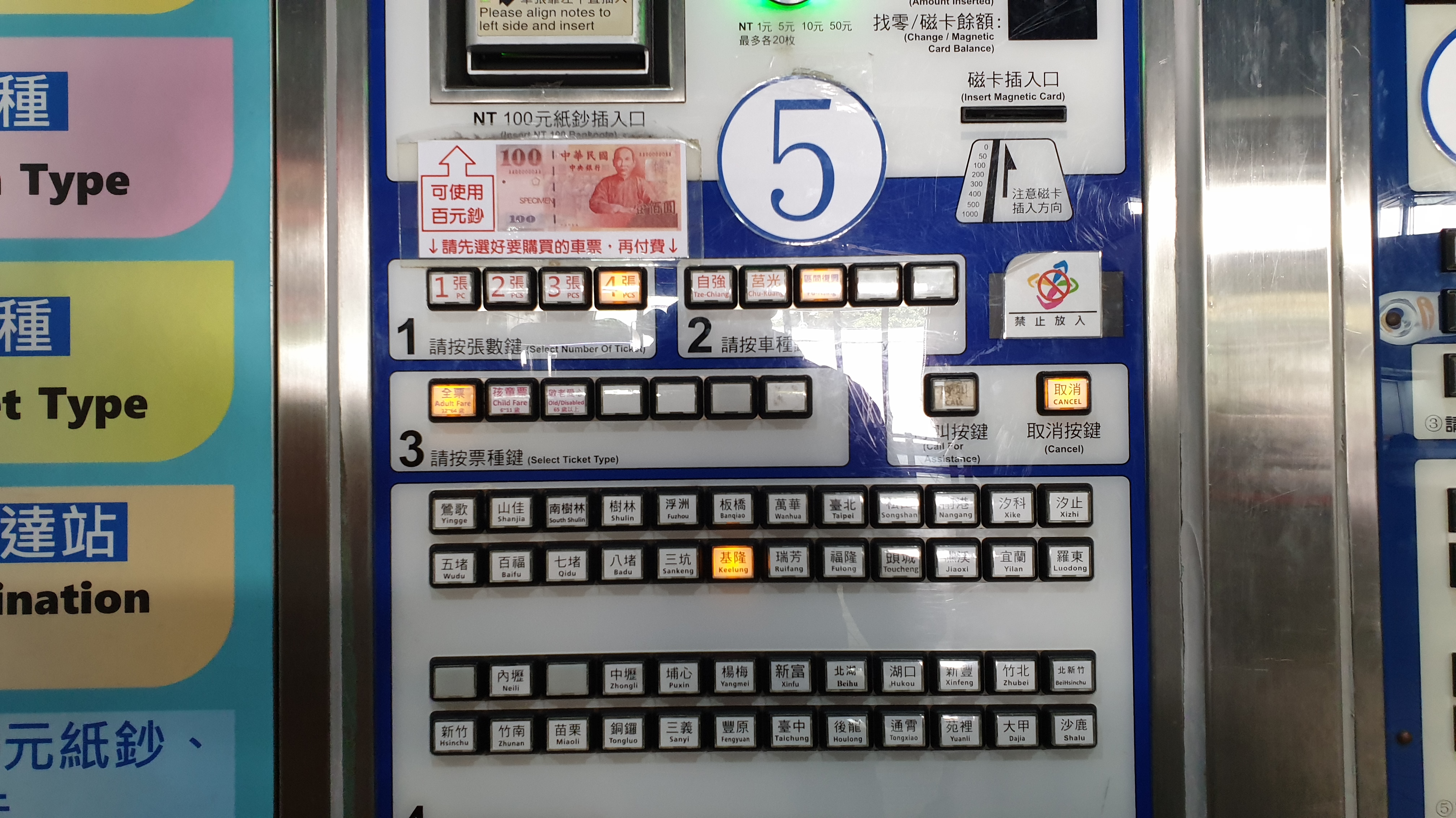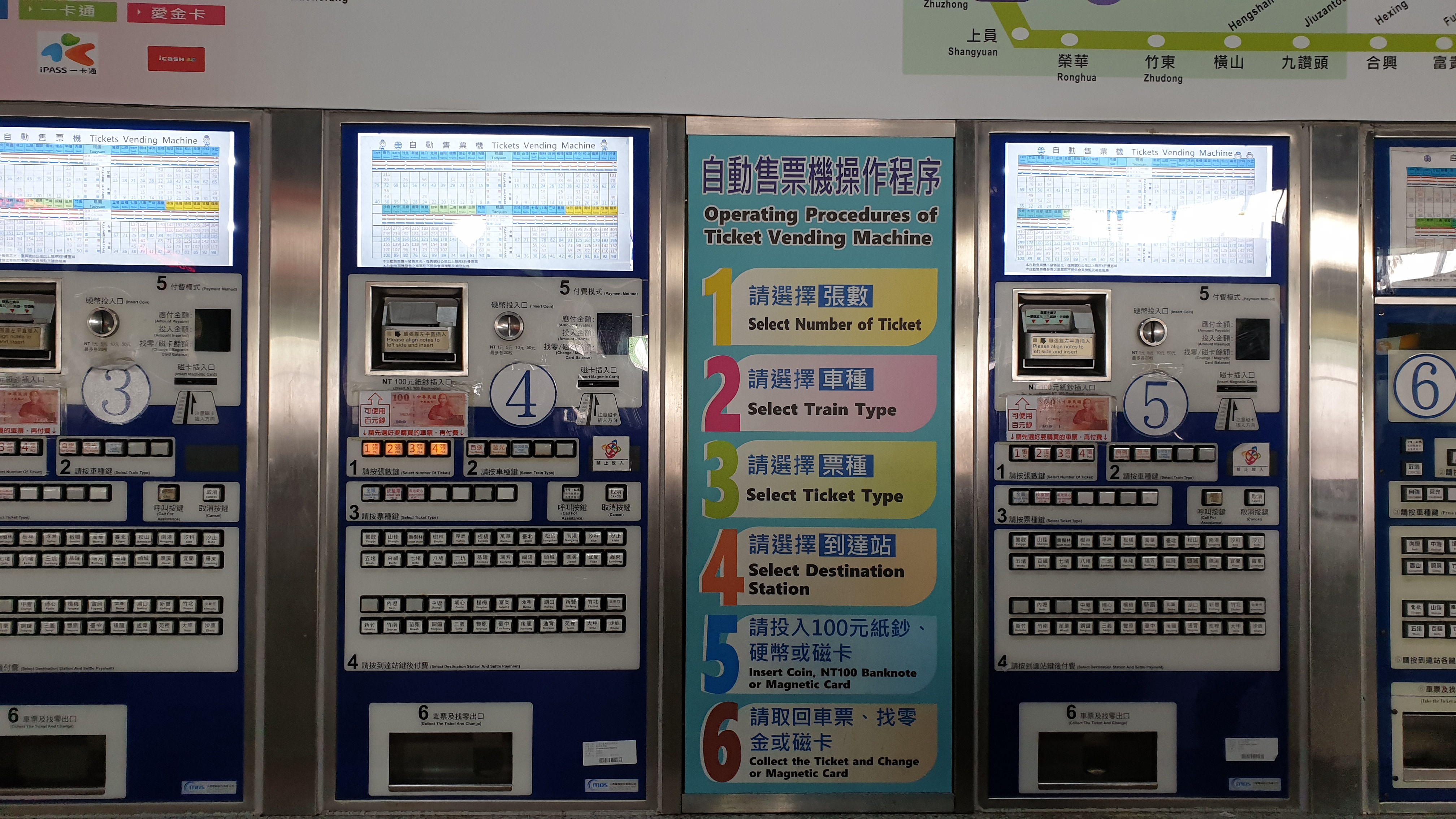 5. 요금 납부. 해당 금액의 동전 또는 100NT 지폐 또는 마그네틱 카드(즉 신용카드)