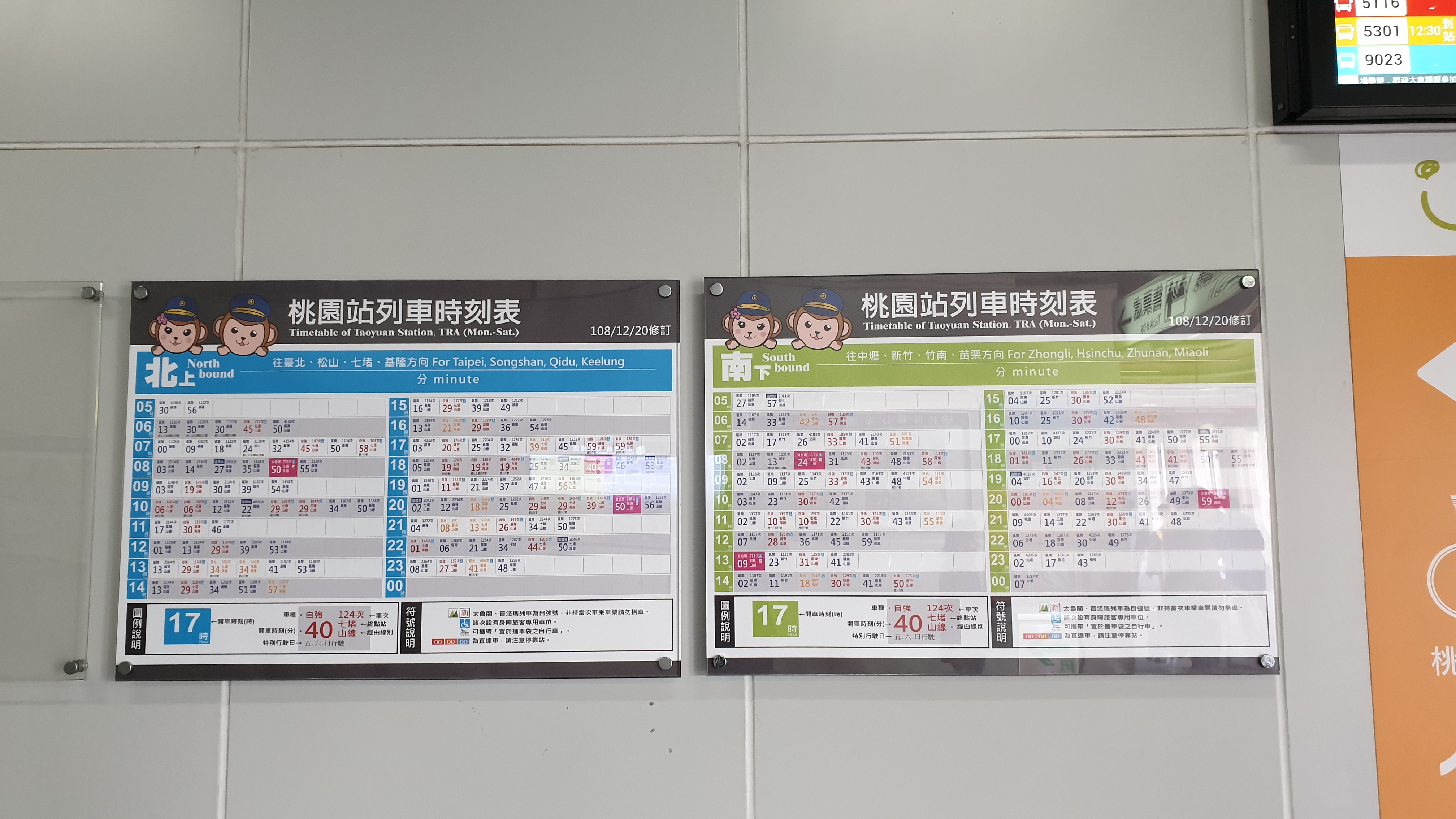 계단을 올라 메인홀로 이동하면 타오위안 역 기차 시간표를 확인할 수 있다.