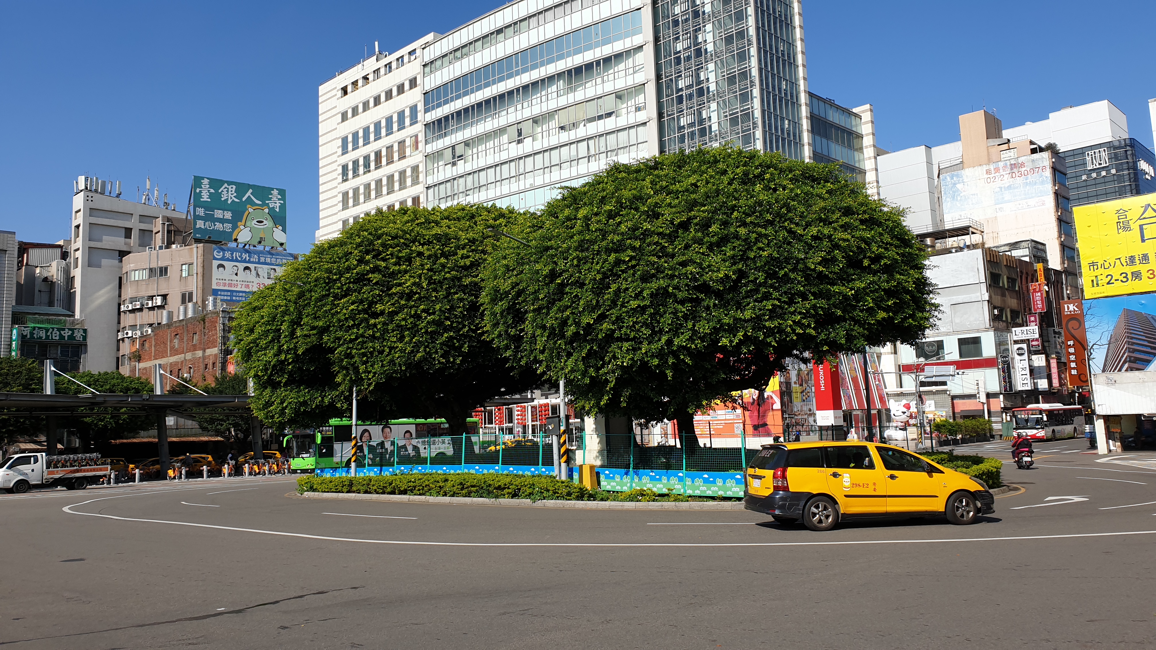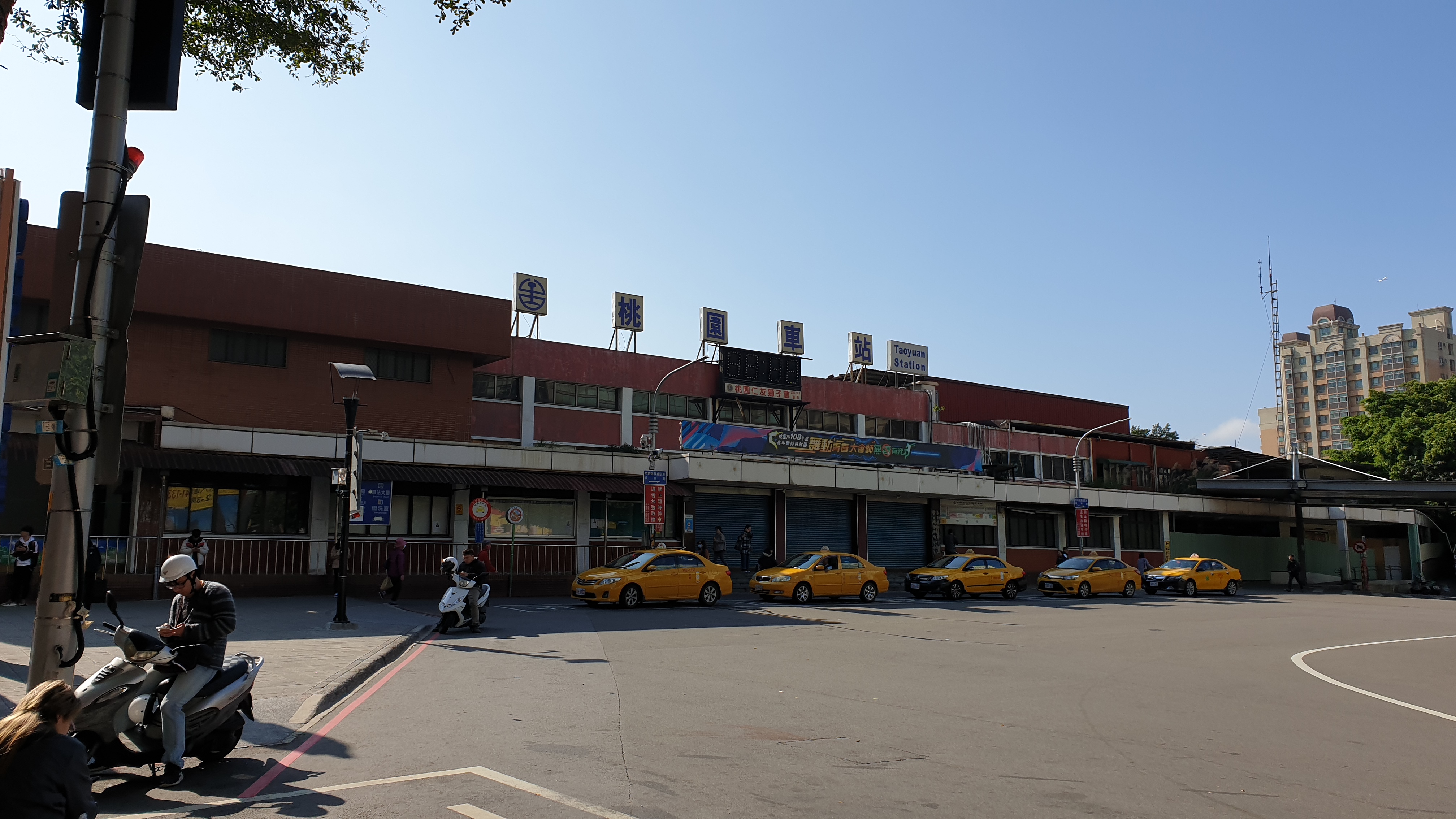 타오위안 역 광장이다. 막 도착했을 때는 택시 뒤로 셧터가 내려가 있어서 뭐지? 했는데, 실제 역 입구는 건물 왼쪽에 있으며 계단을 이용해서 매표소로 통하도록 되어 있다. 보이는 이 건물은 예전에 사용하던 역사인 것 같다. 이 광장은 차도일뿐 사람들이 옹기종기 모일 수 있는 구조는 아니다.