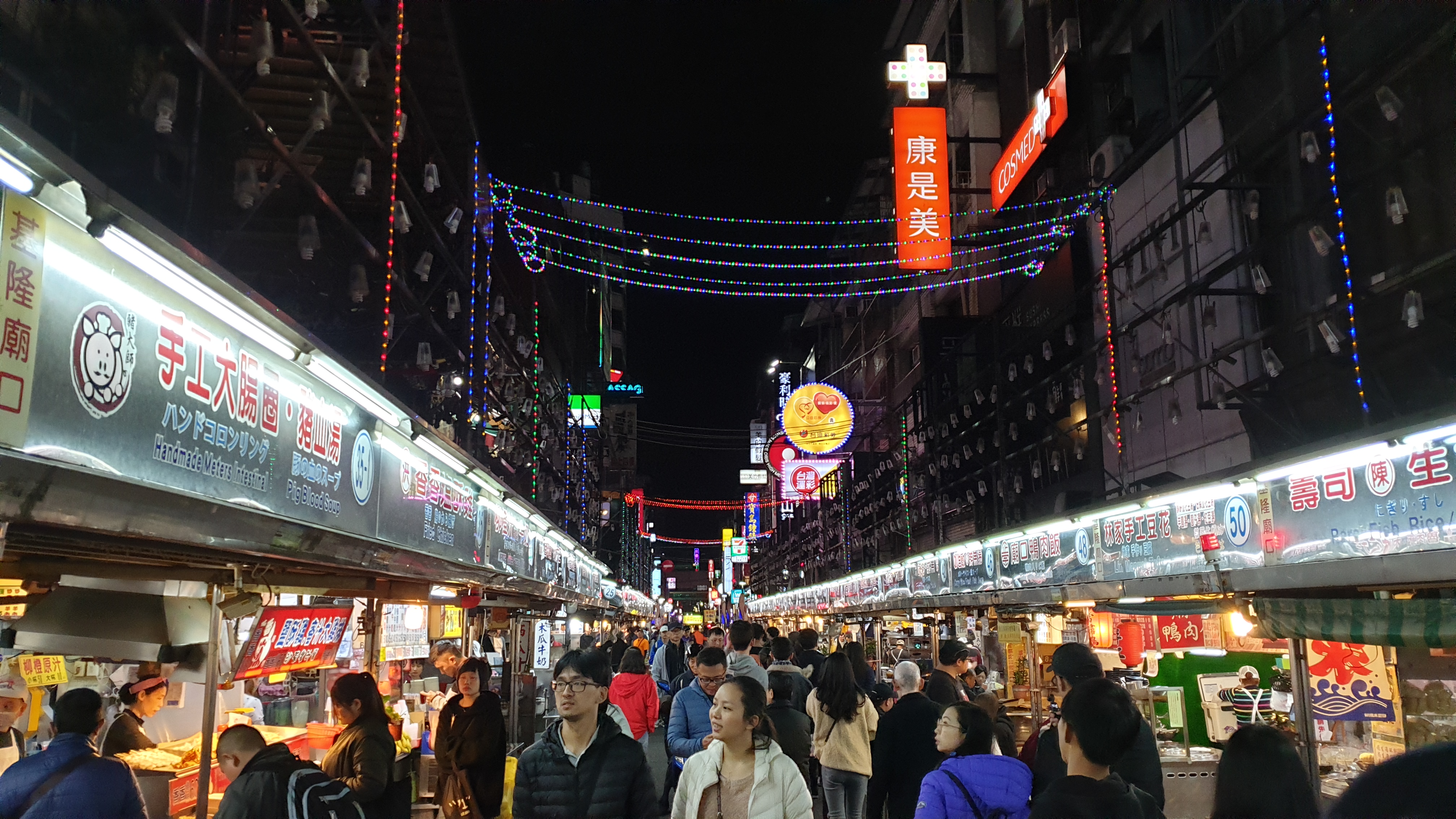 지룽 사람들이 모두 여기 와서 저녁을 먹는 듯 정말 사람이 많다. 수요일, 목요일 이곳을 방문했는데 주말에는 더 많은 사람들이 모이겠지. 이제 눈 구경은 그만하고 입 구경을 해본다.