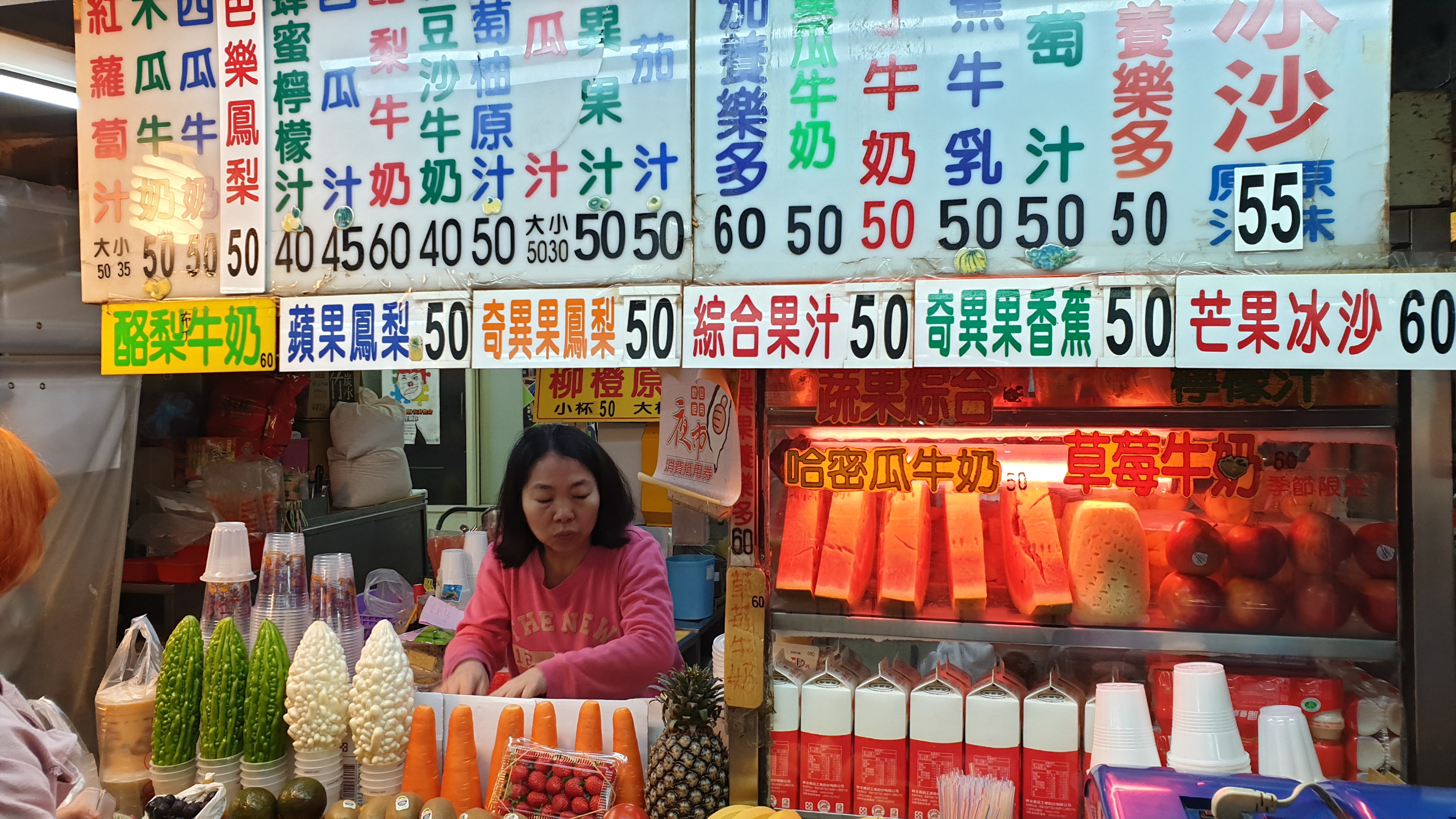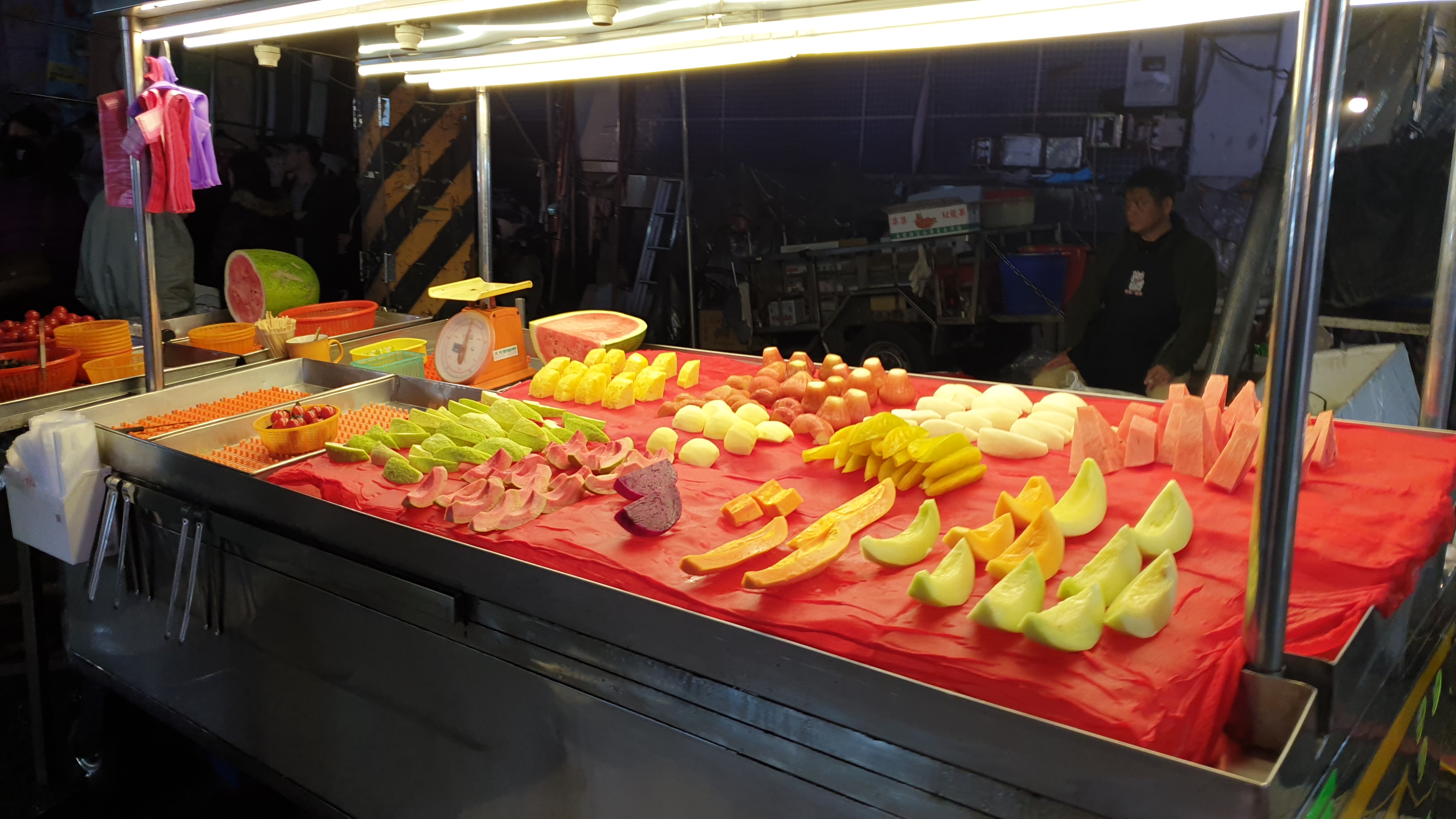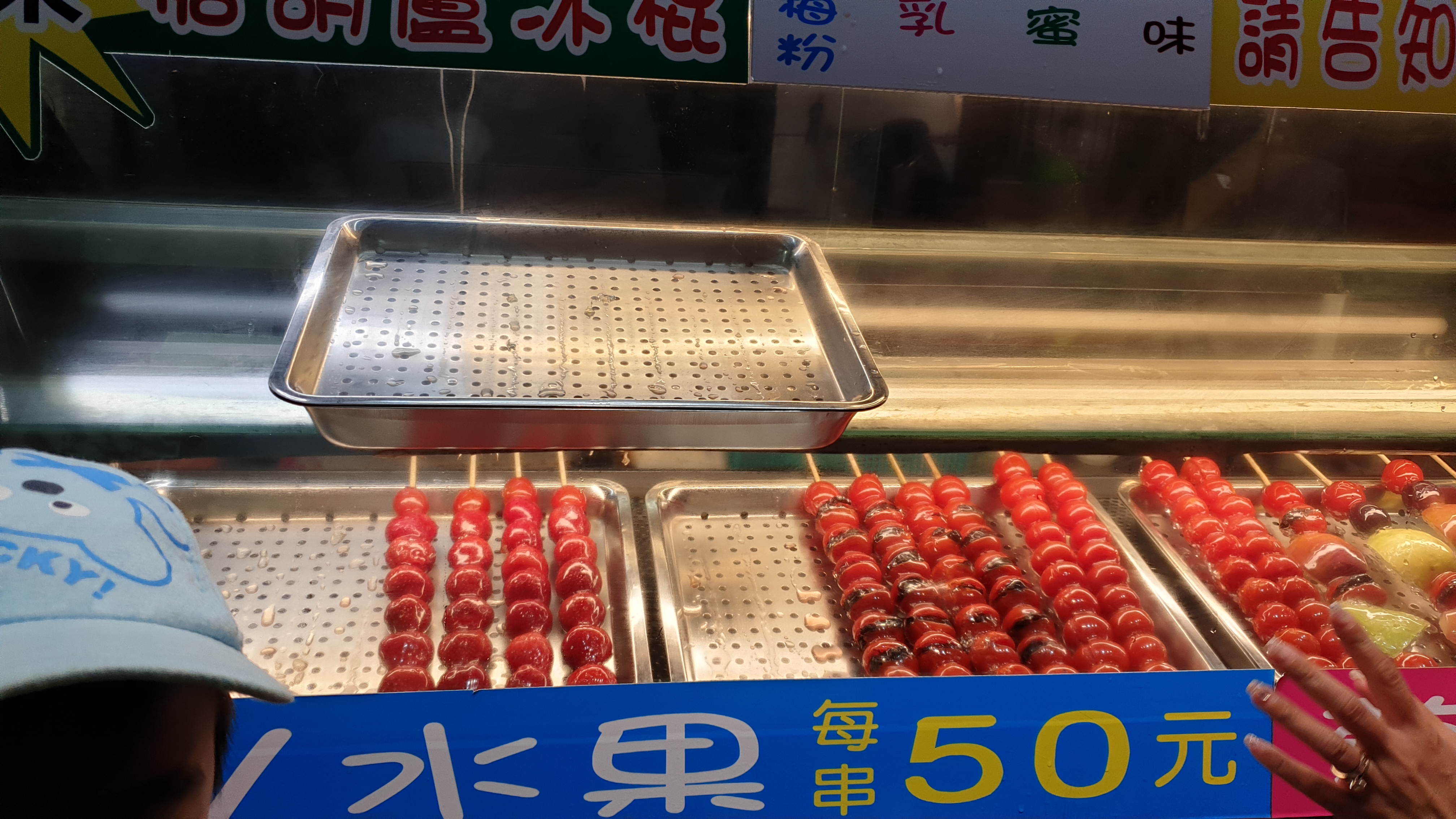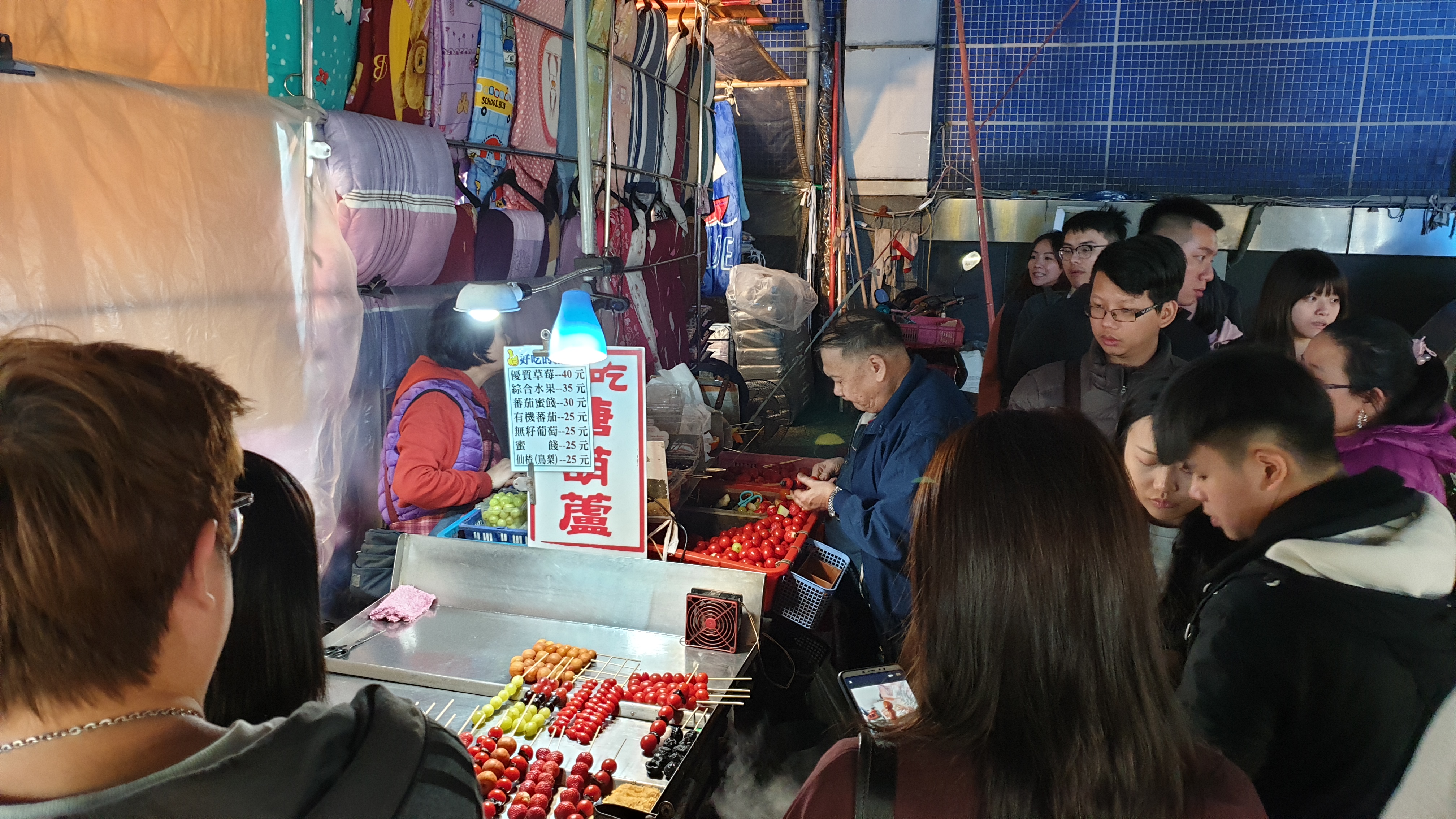 여기는 시장 입구 탕후루를 팔고 있는 상점이다. 이제 막 상점을 열어서 과일을 끼우고 있는 할아버지 손길에 비해 손님이 너무 많다. 딸기를 기준으로 여기가 40NT에 팔고 있다. 우리는 줄을 서기 싫어서 지나쳤는데 결국 다른 상점에서 50NT로 먹게 되었다.