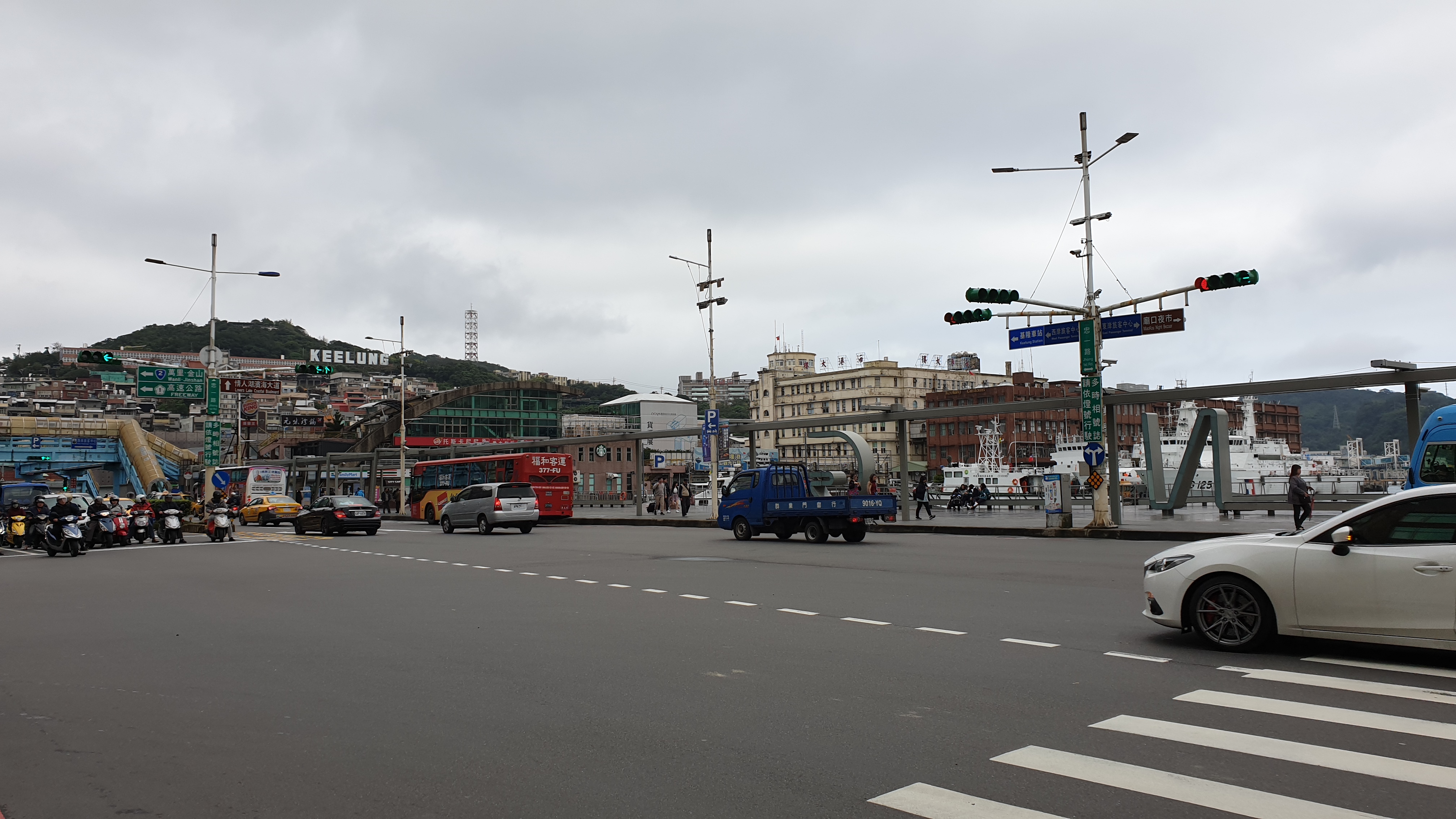호텔 앞 도로명은 Zhong 1st Road로 항구를 바라보고 있는 이곳은 타 지역에서 돌아올 때 주로 내리는 곳이다. 이 길을 내 집 앞마당처럼 3일간 다녔다. 저 멀리 KEELUNG 간판이 보인다. 할리우드 간판을 본 떳다고 하던데, 밤엔 조명이 계속 변경된다.