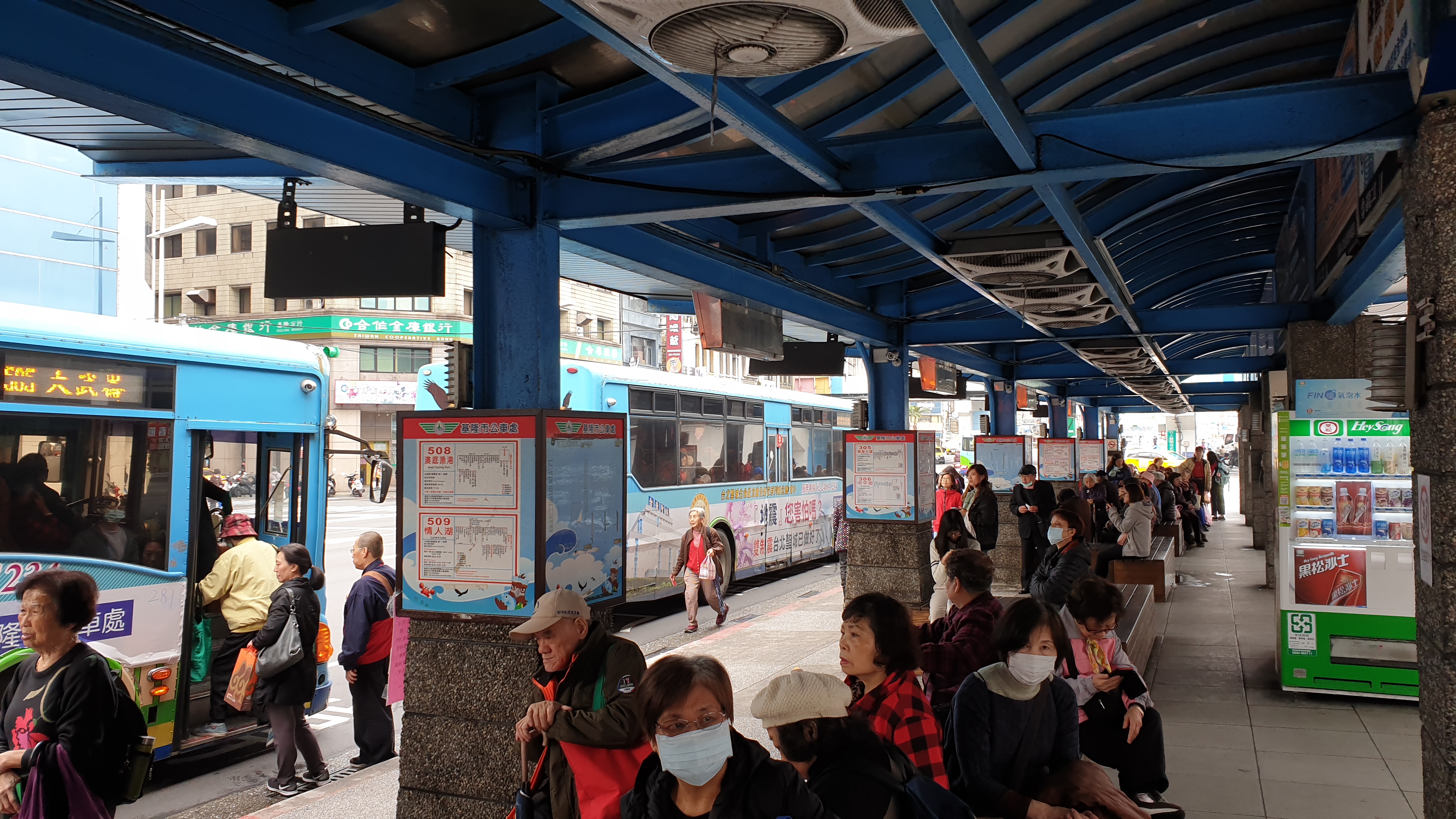 POYA E Square Keelung 쇼핑몰 바로 앞이 지룽 버스 순환역이다.