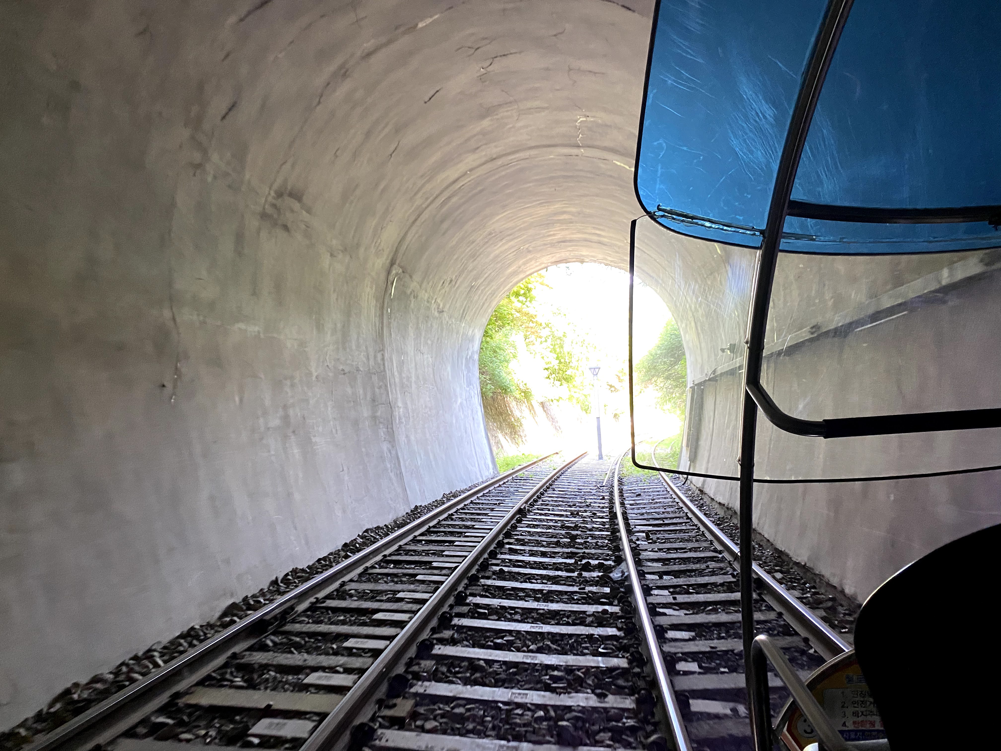 앞에서 천천히 가면 나도 빨리 못 가는 레일바이크의 특성상 앞 팀의 속도에 따라 다소 차이는 있다.