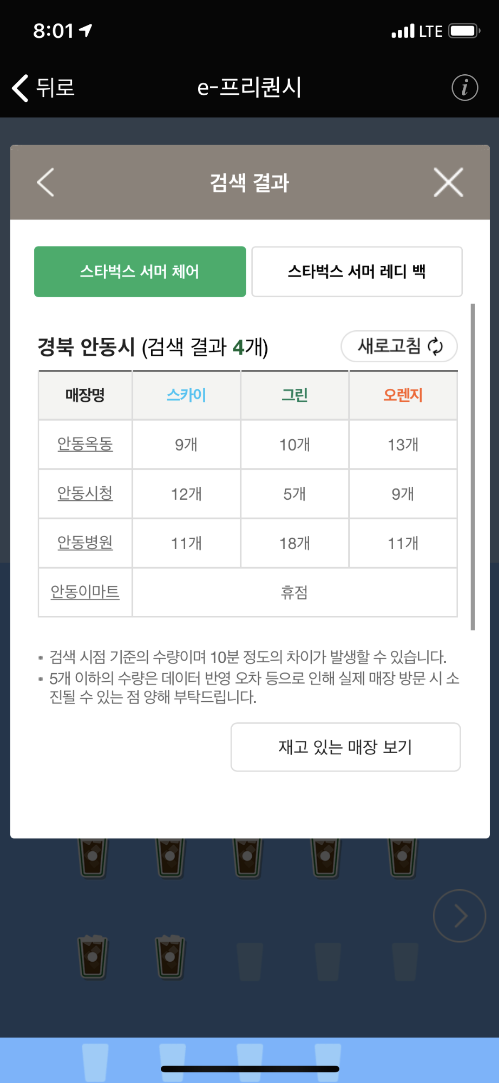 6월9일 스타벅스 앱에서 수량조회 가능하게 되었다.