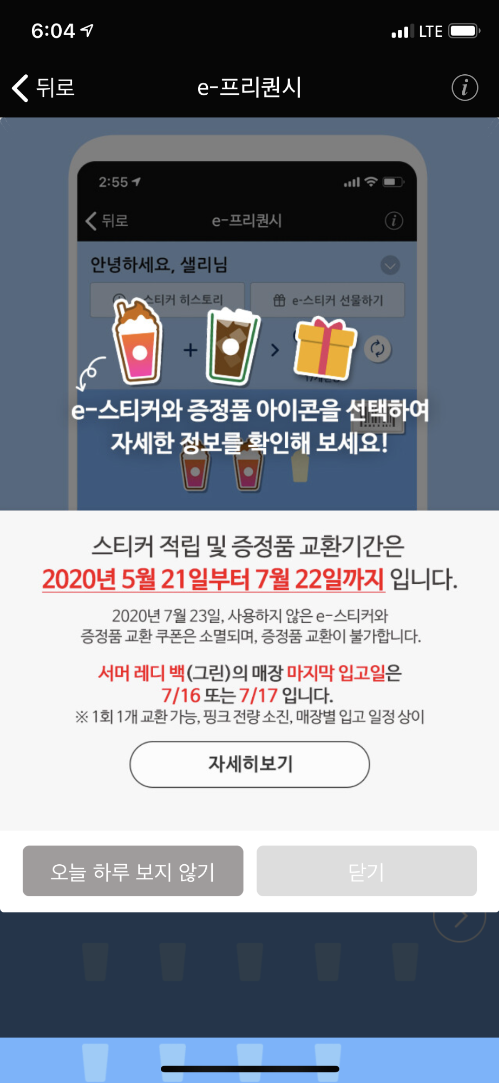 캠핑의자 끝나면 톨사이즈 음료2개로 교환