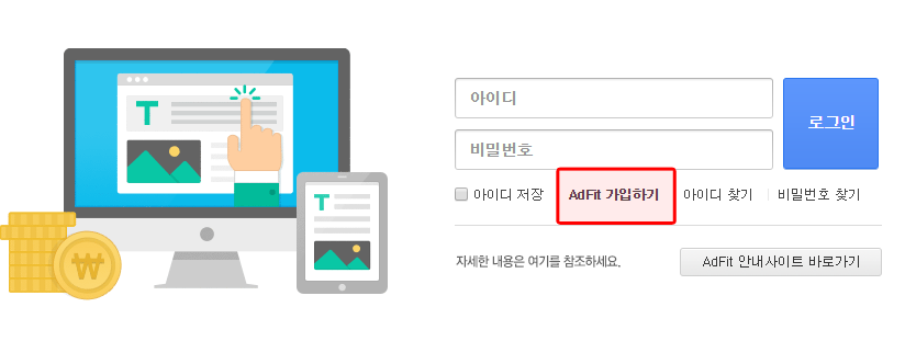 AdFit 광고 계정을 받기 위하여 광고 사이트에 가입을 한다.