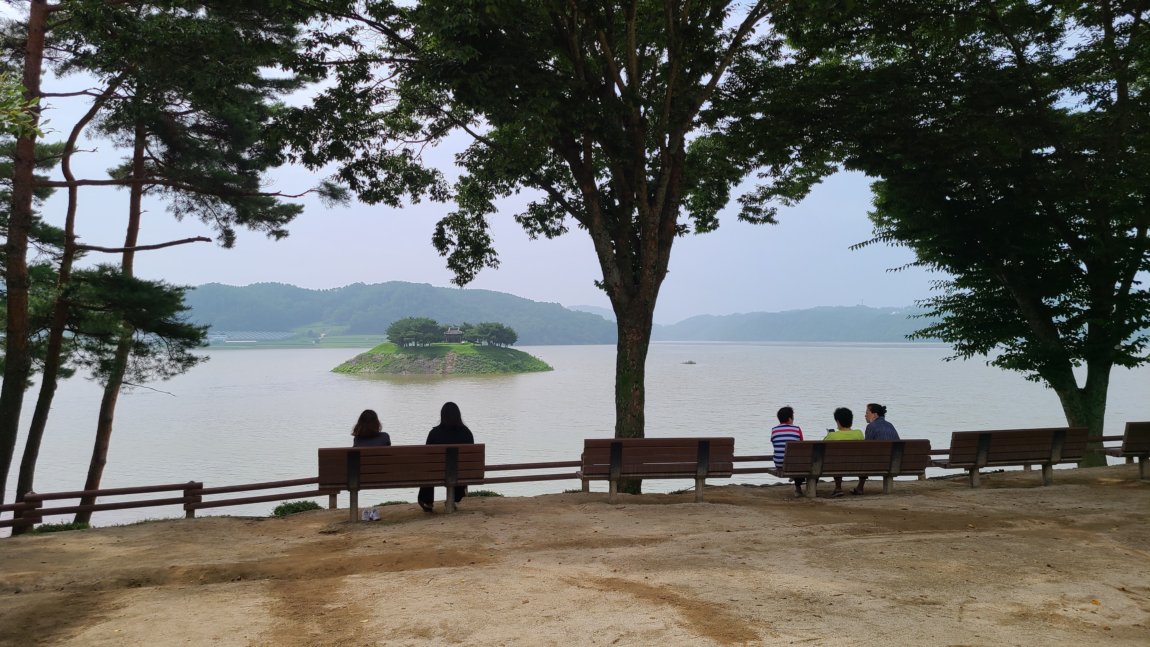 며칠 전, 봉화에 폭우가 내리면서 댐 수위가 많이 올라갔는데 청보리밭 축제를 하던 시사단 너머 의촌리 일대가 물에 잠긴 모습이다.