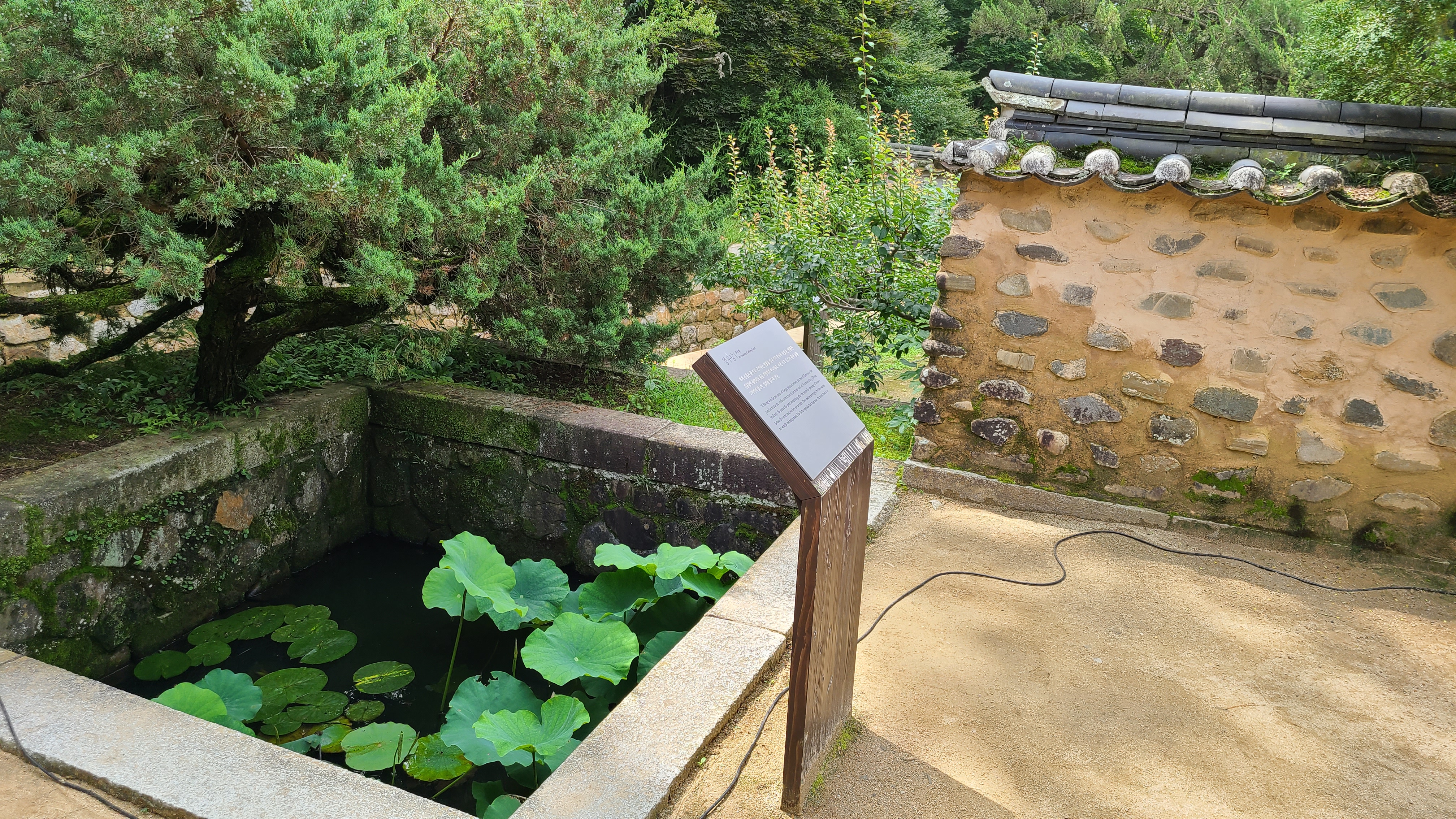 마당의 우물 뒤로 보이는 것이 정문이다.