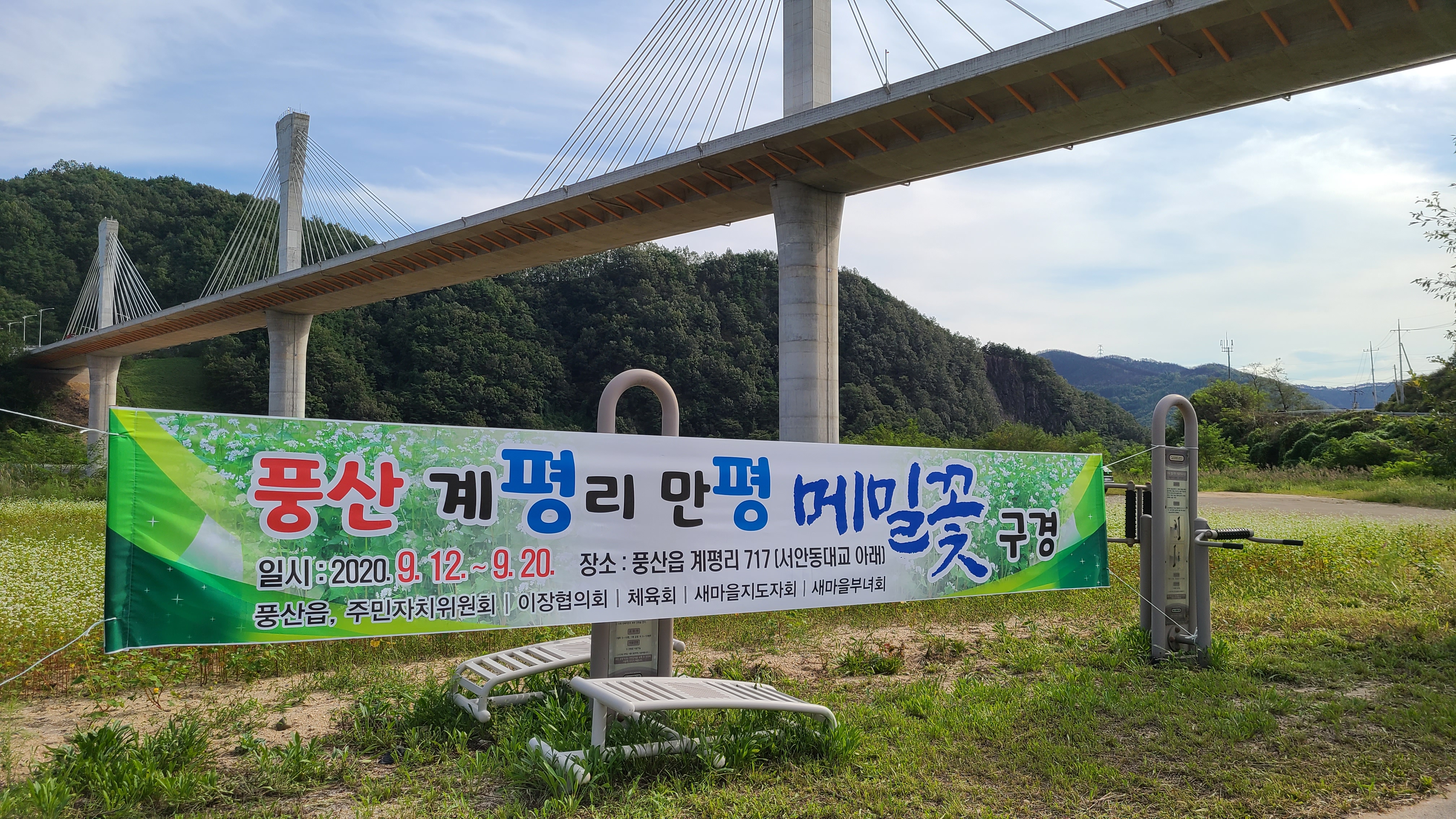 안동시 풍산읍 계평리, 서안동대교 아래에 약 1만평 규모의 메밀꽃밭이 있다.