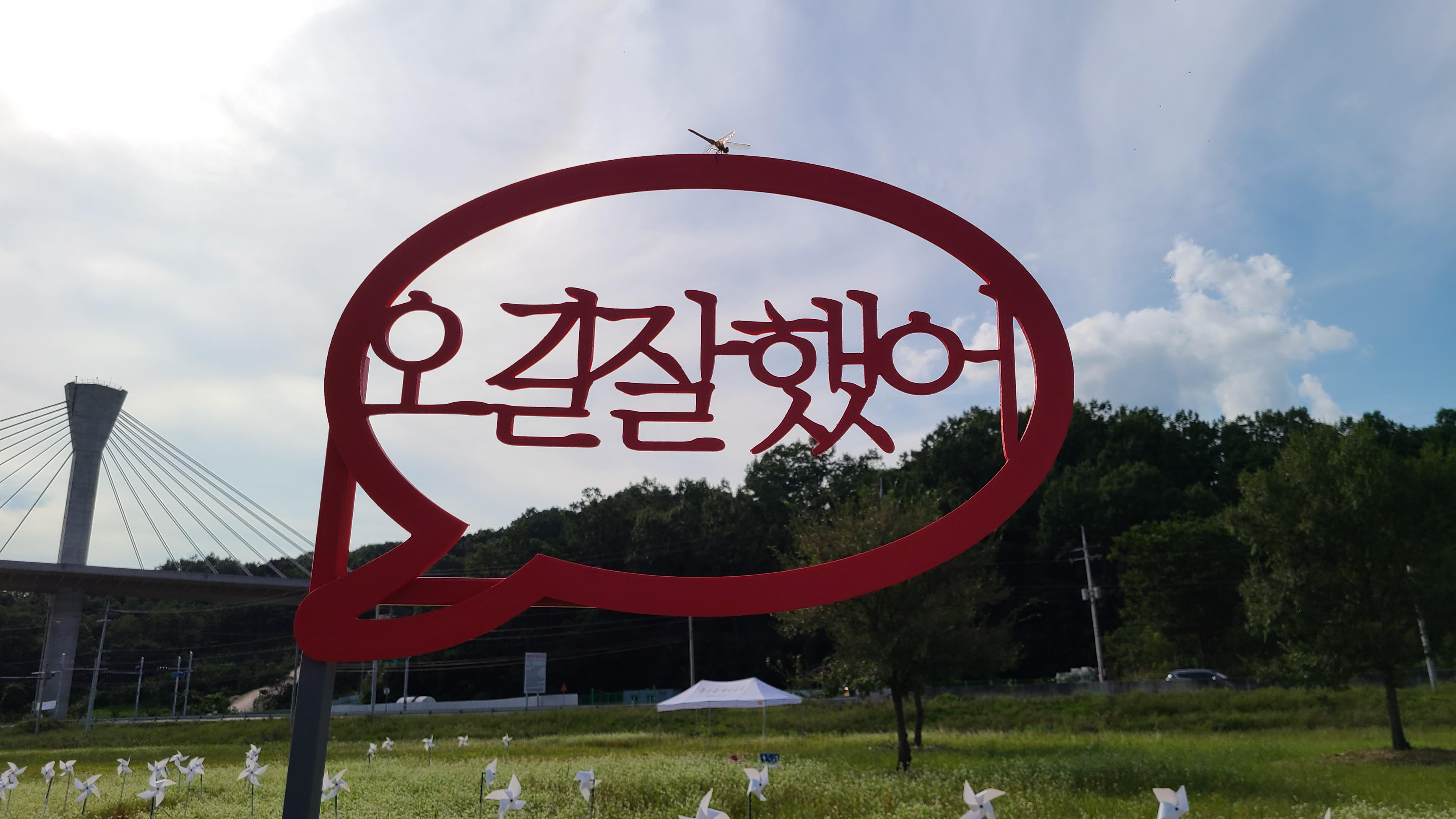 빨간 하트 뒤로 보이는 다리가 서안동대교.